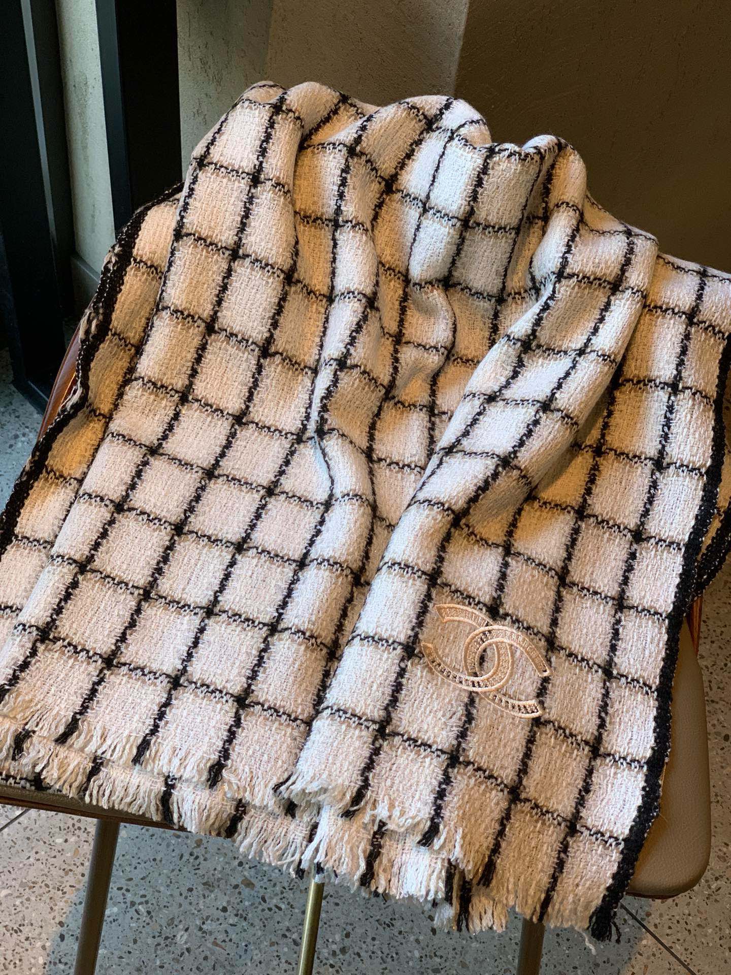 CC Scarf 200 CM In White With Black Plaid Cashmere 416803