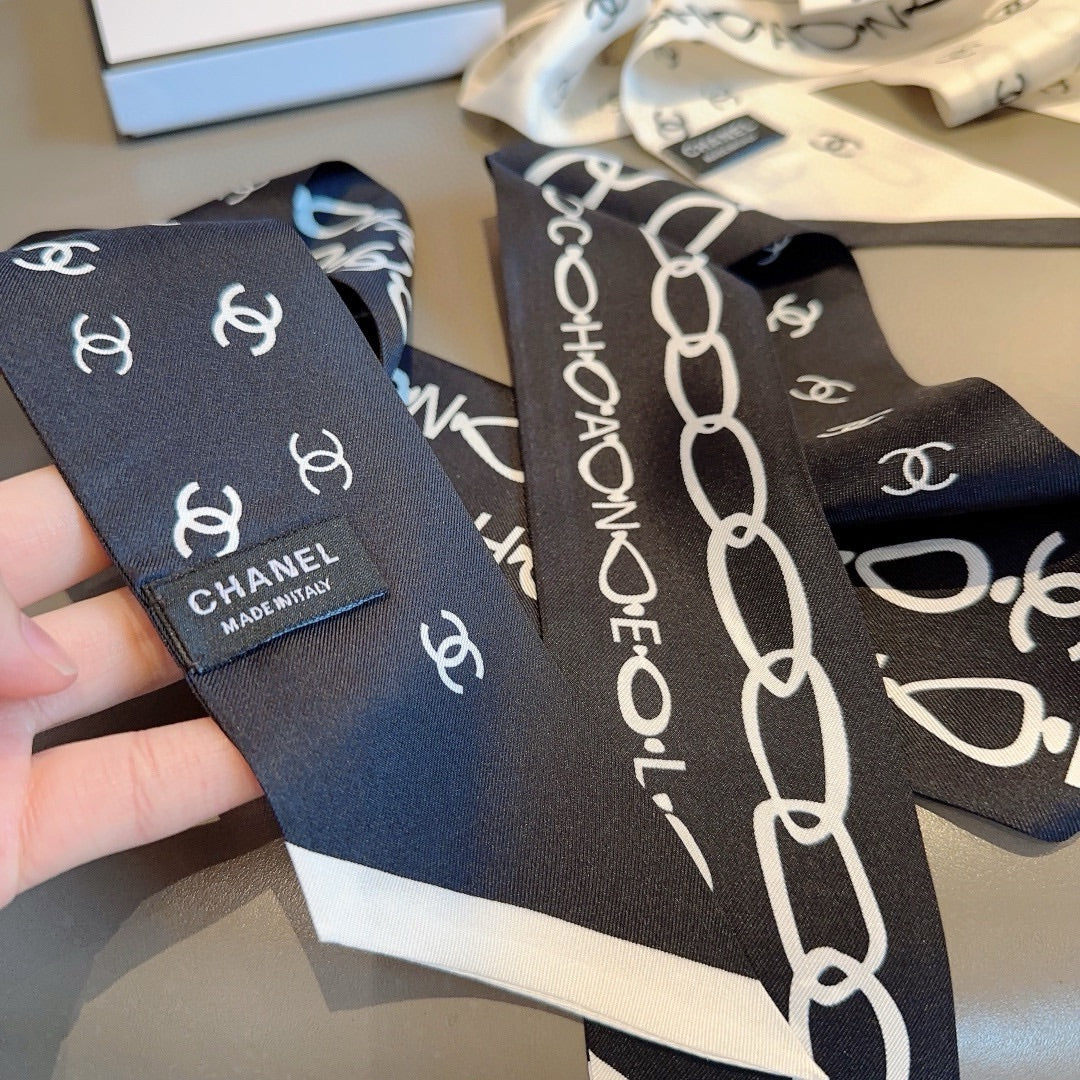 CC Slim Bandeau 120 CM In Black White Silk Twill 166318
