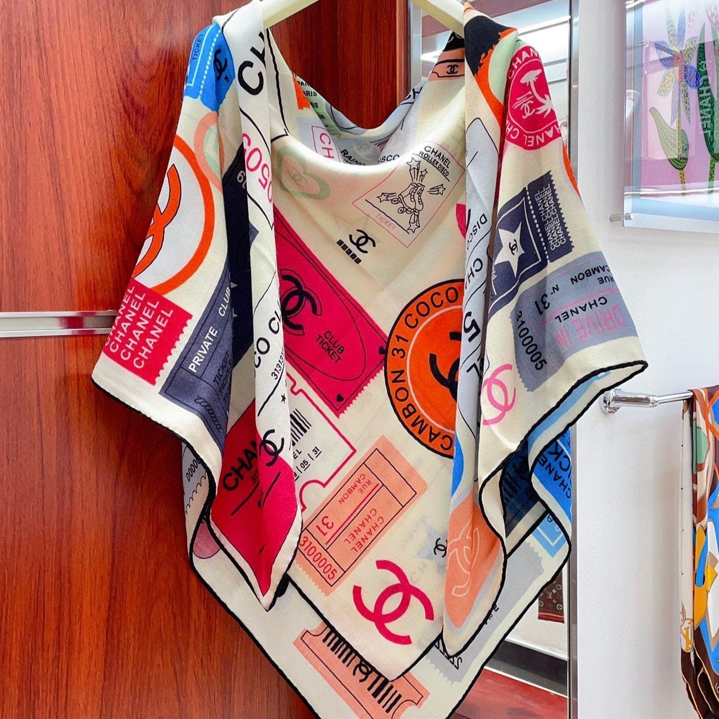 CC Square Scarf 140 CM In Multicolored Cashmere And Silk 388151