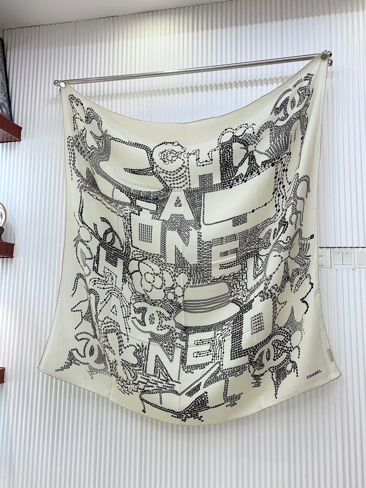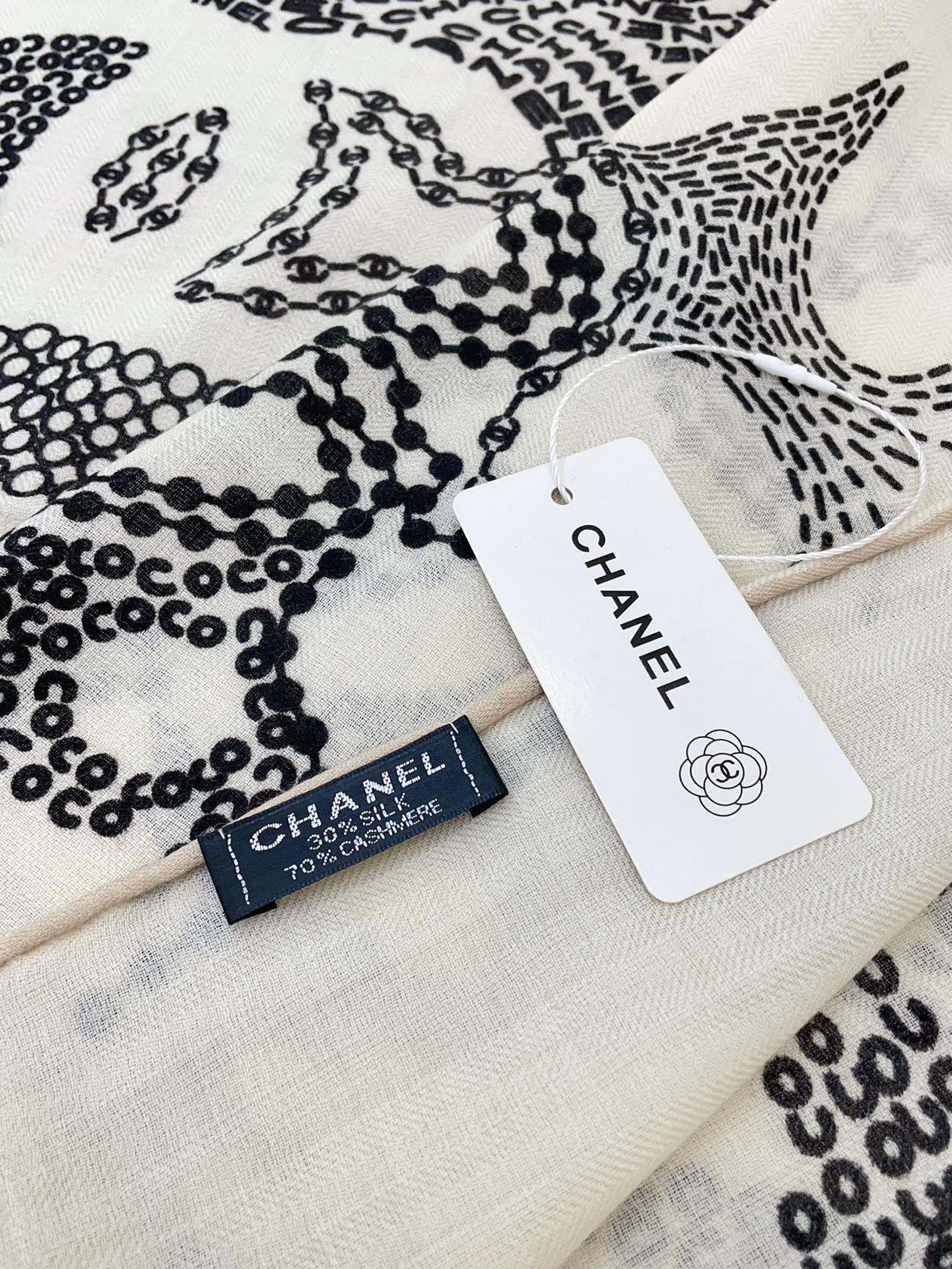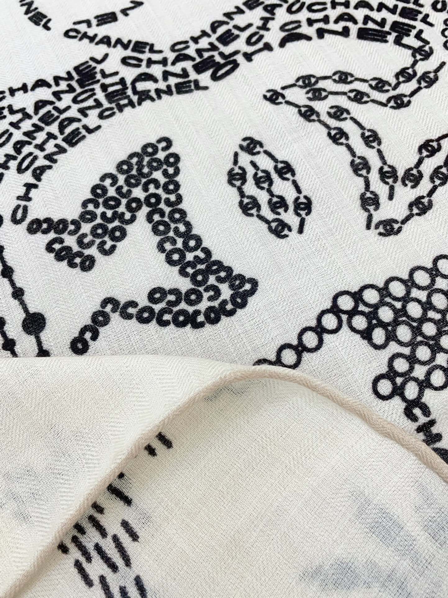 CC Square Scarf 140 CM In White Black Cashmere And Silk 424559