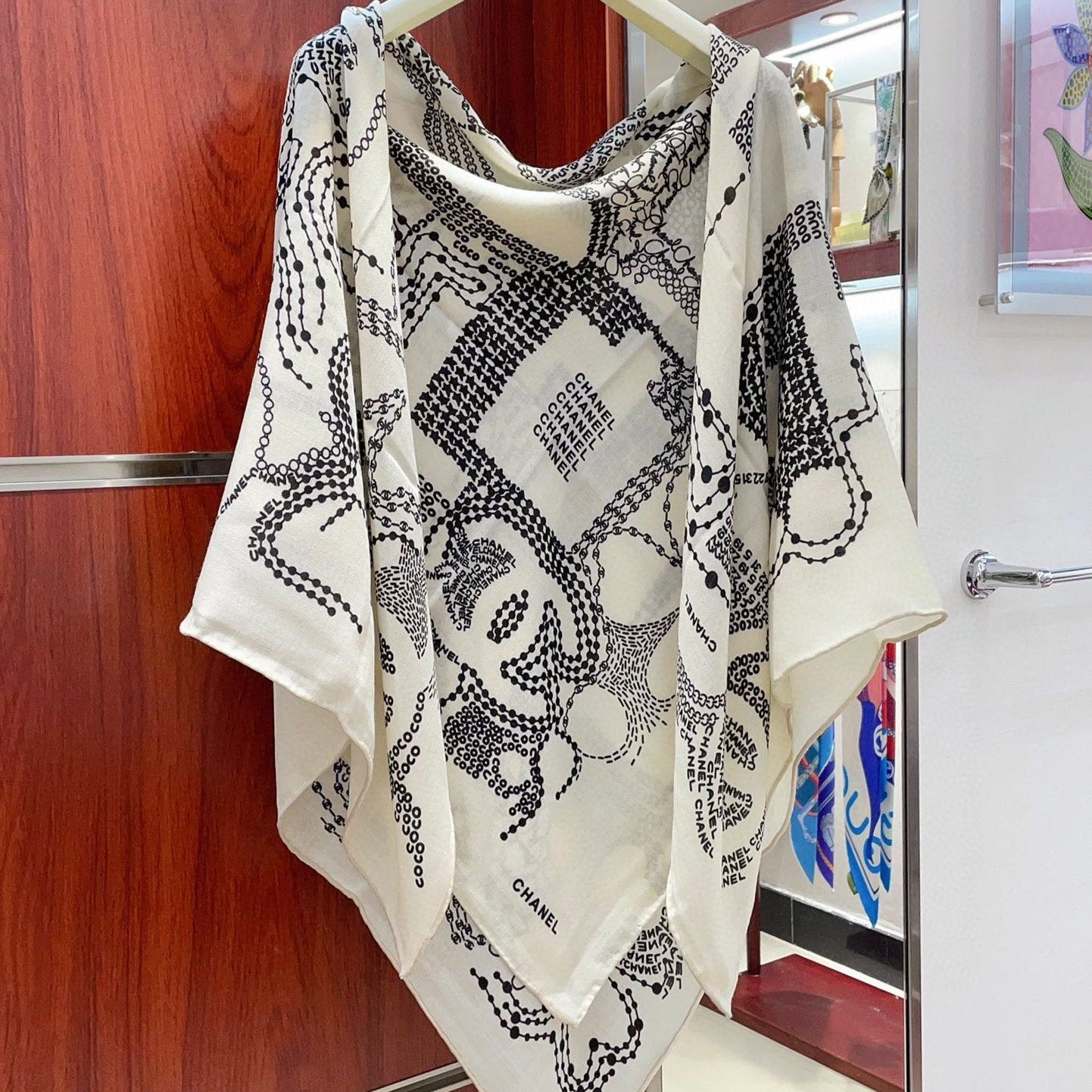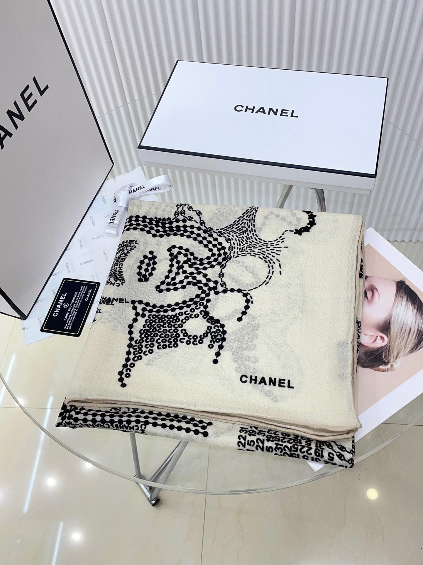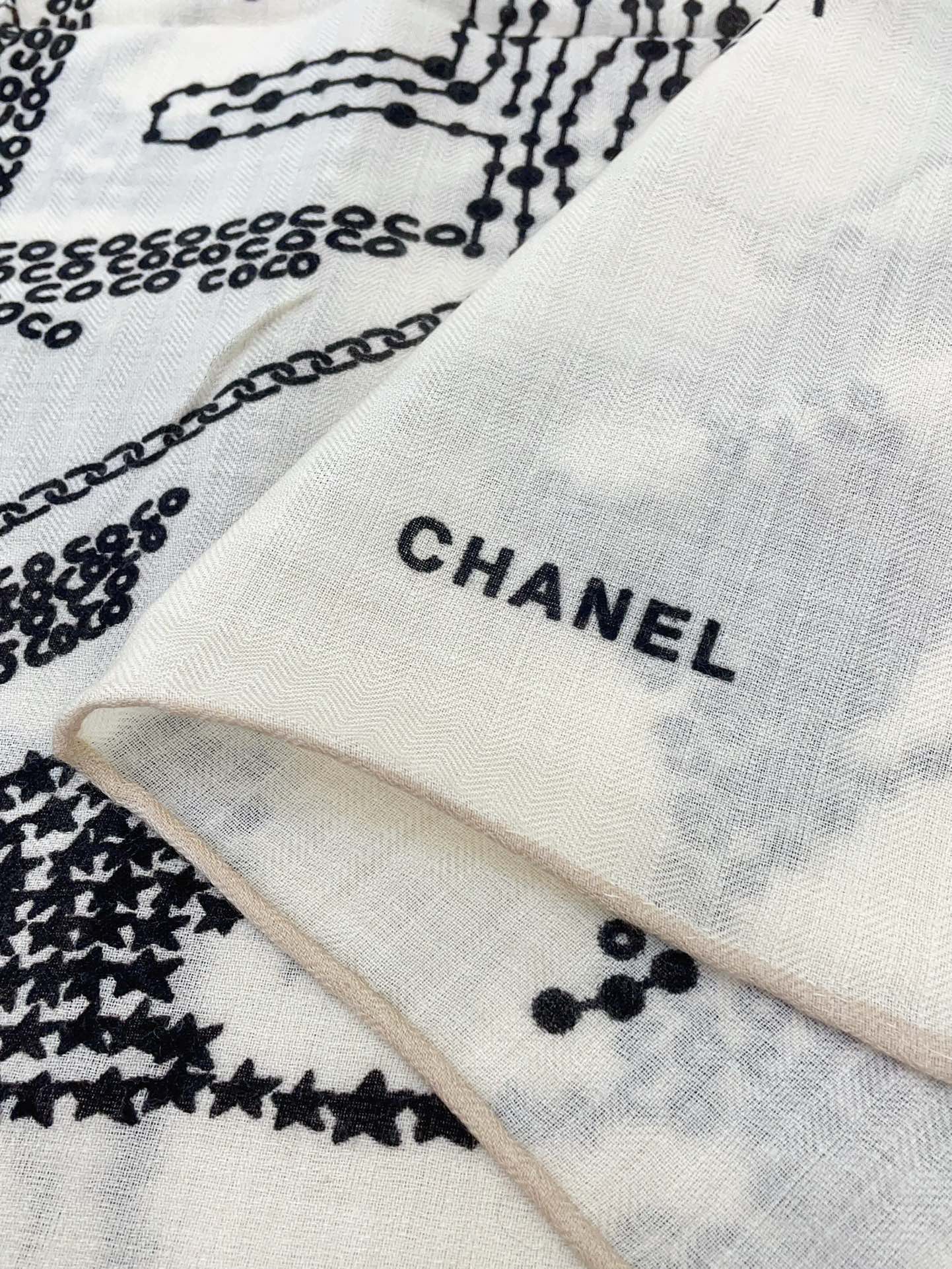 CC Square Scarf 140 CM In White Black Cashmere And Silk 424559