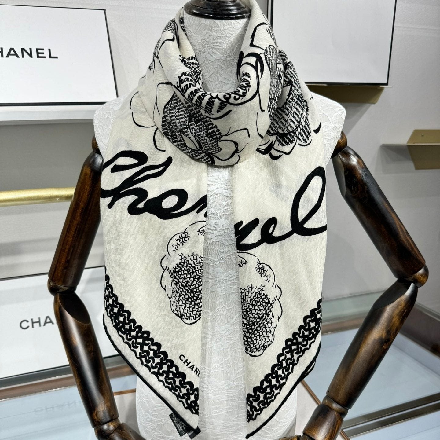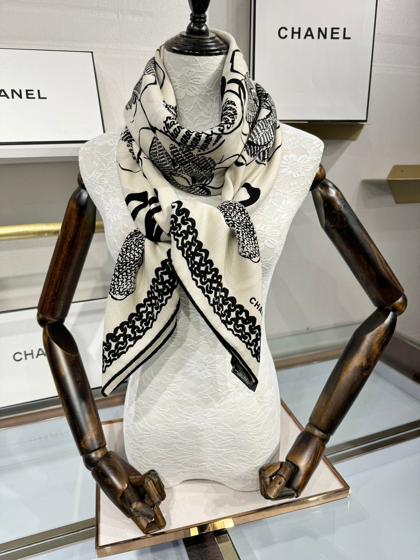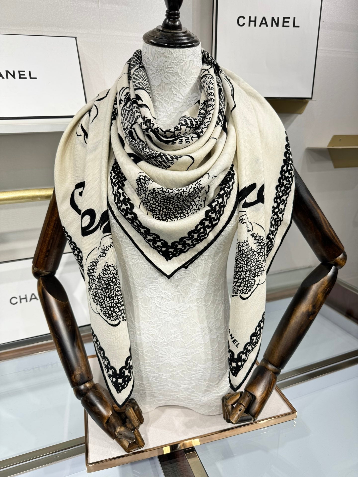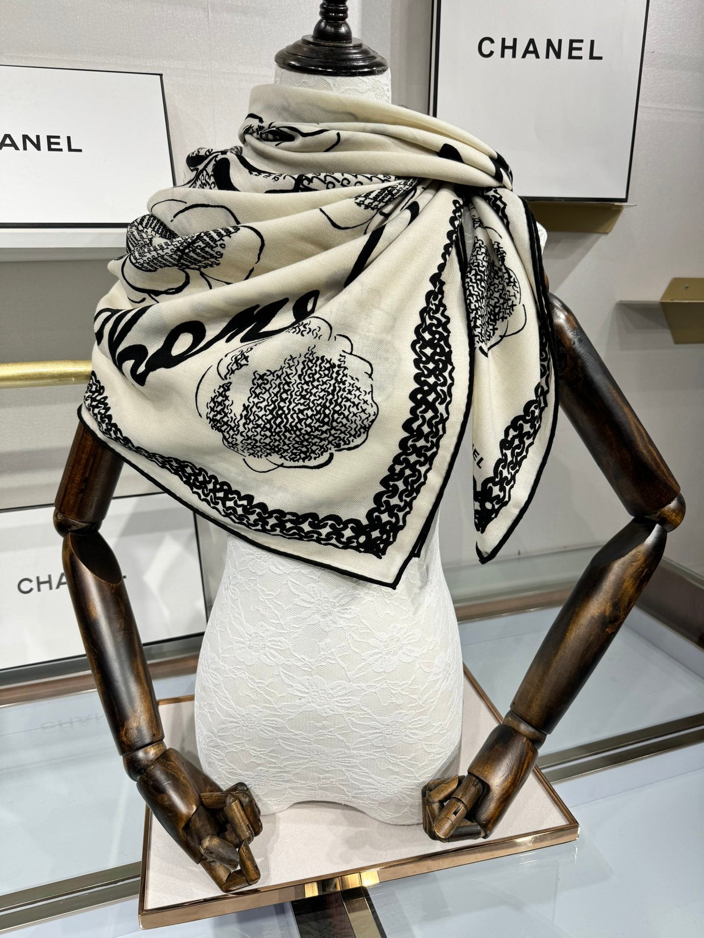 CC Square Scarf 140 CM In White Black Cashmere Silk 408419
