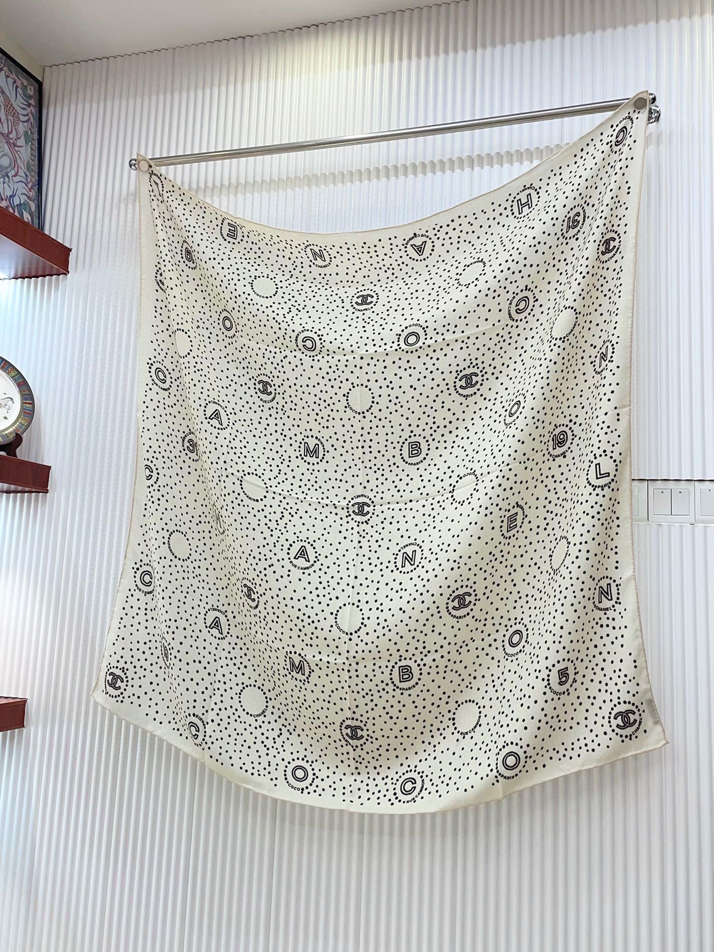 CC Square Scarf 140 CM In White Mix Black Cashmere And Silk 398279