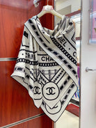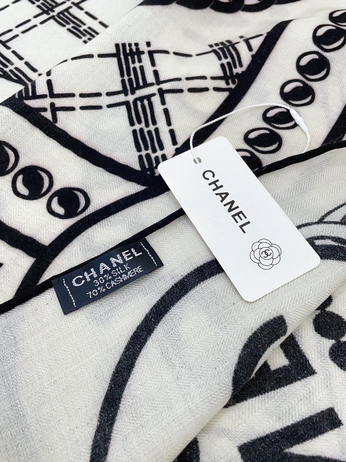 CC Square Scarf 140 CM In White Mix Black Cashmere And Silk 407279