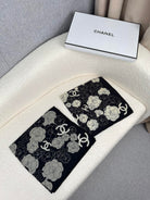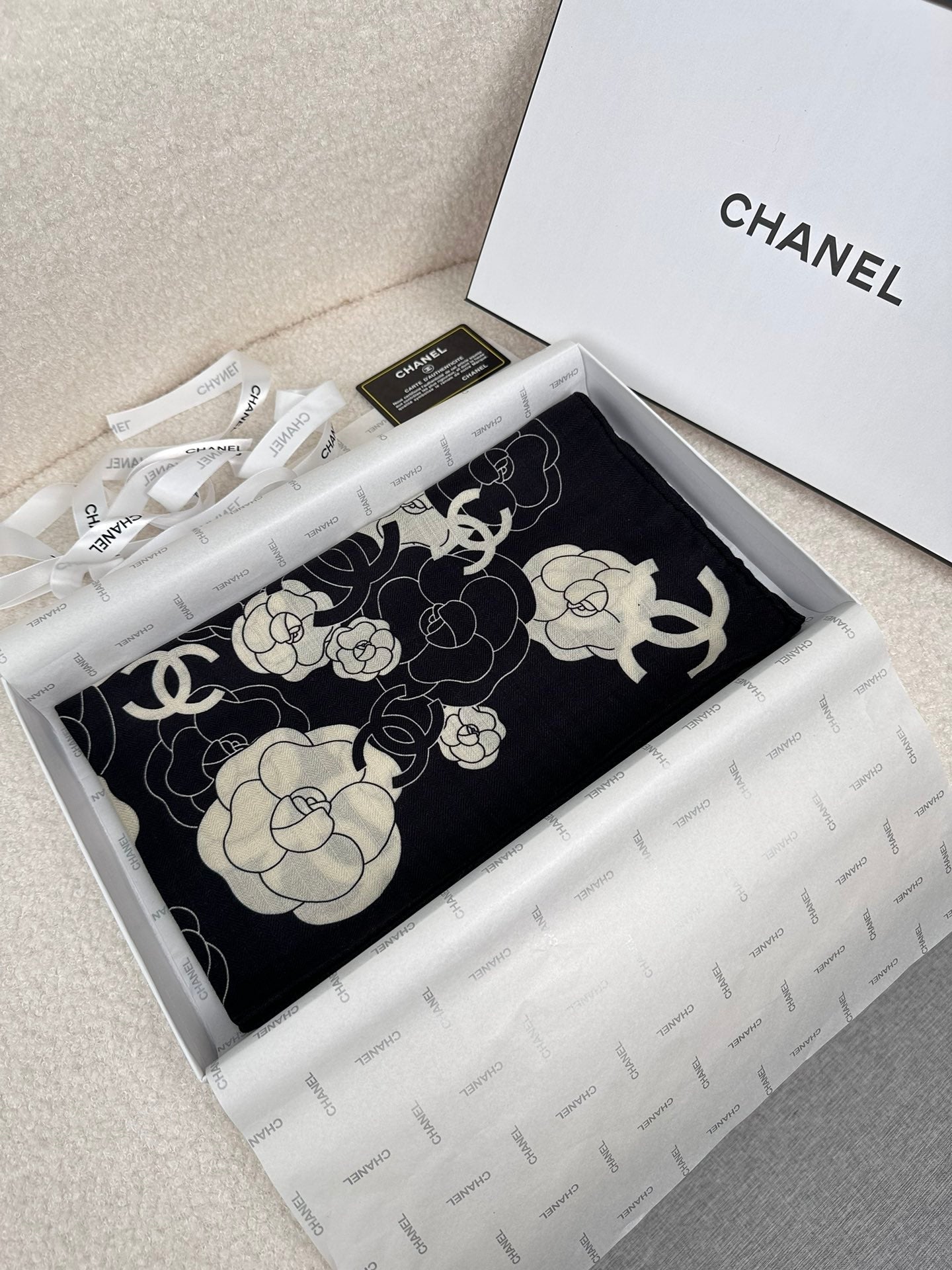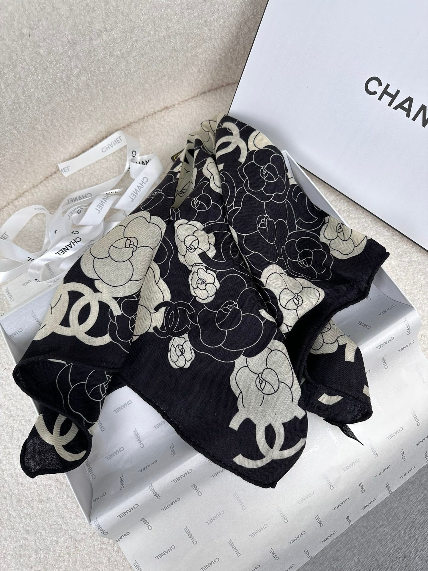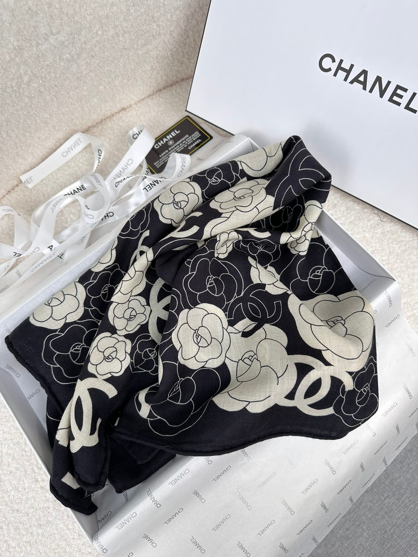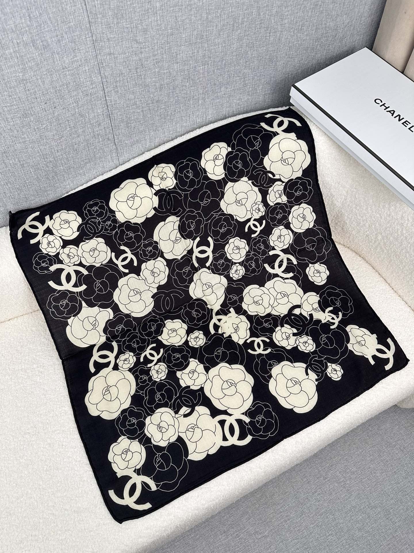 CC Square Scarf 70 CM In Black Mix White Ivory Camellia Cashmere And Silk 367381