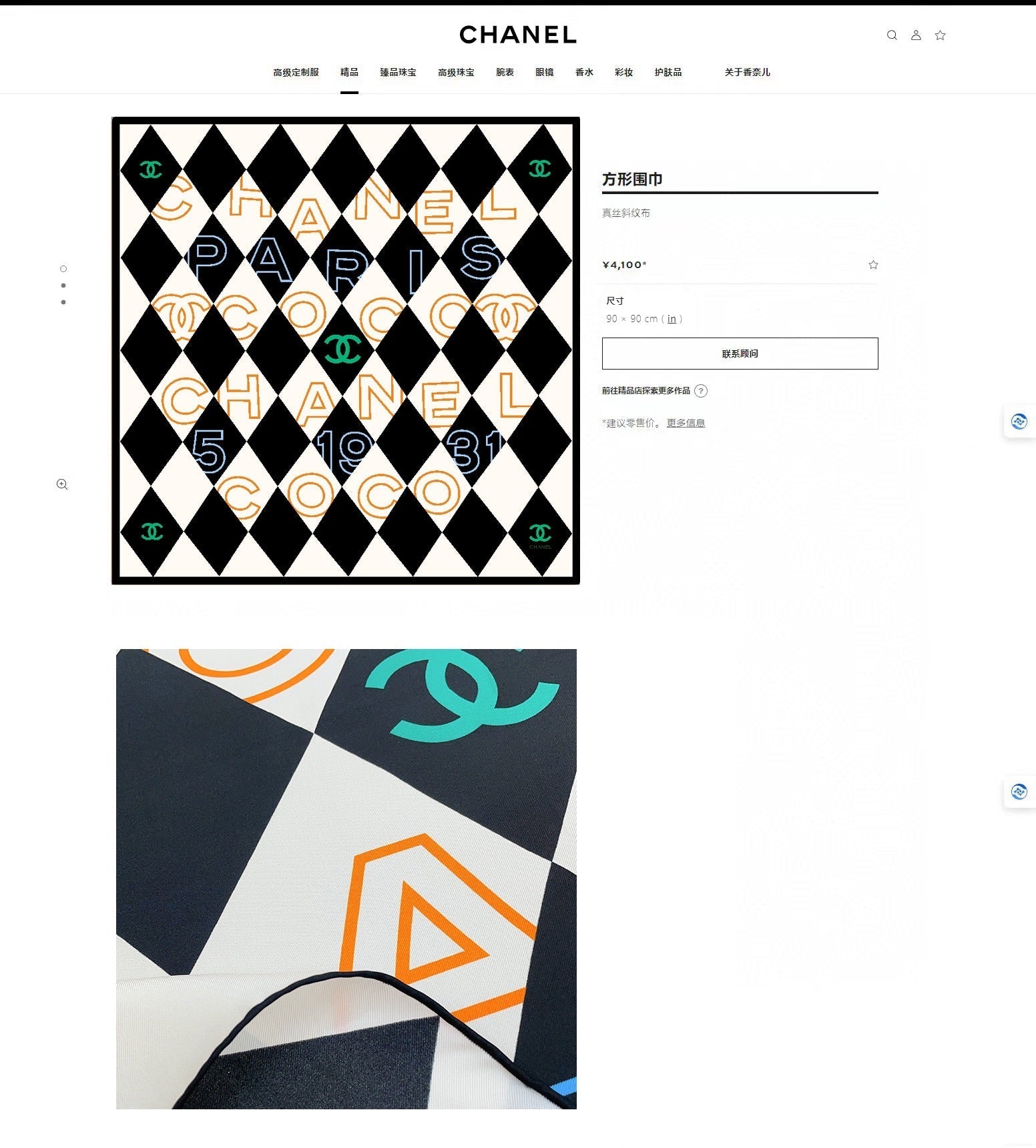CC Square Scarf 90 CM In Colorful Silk Twill 208575