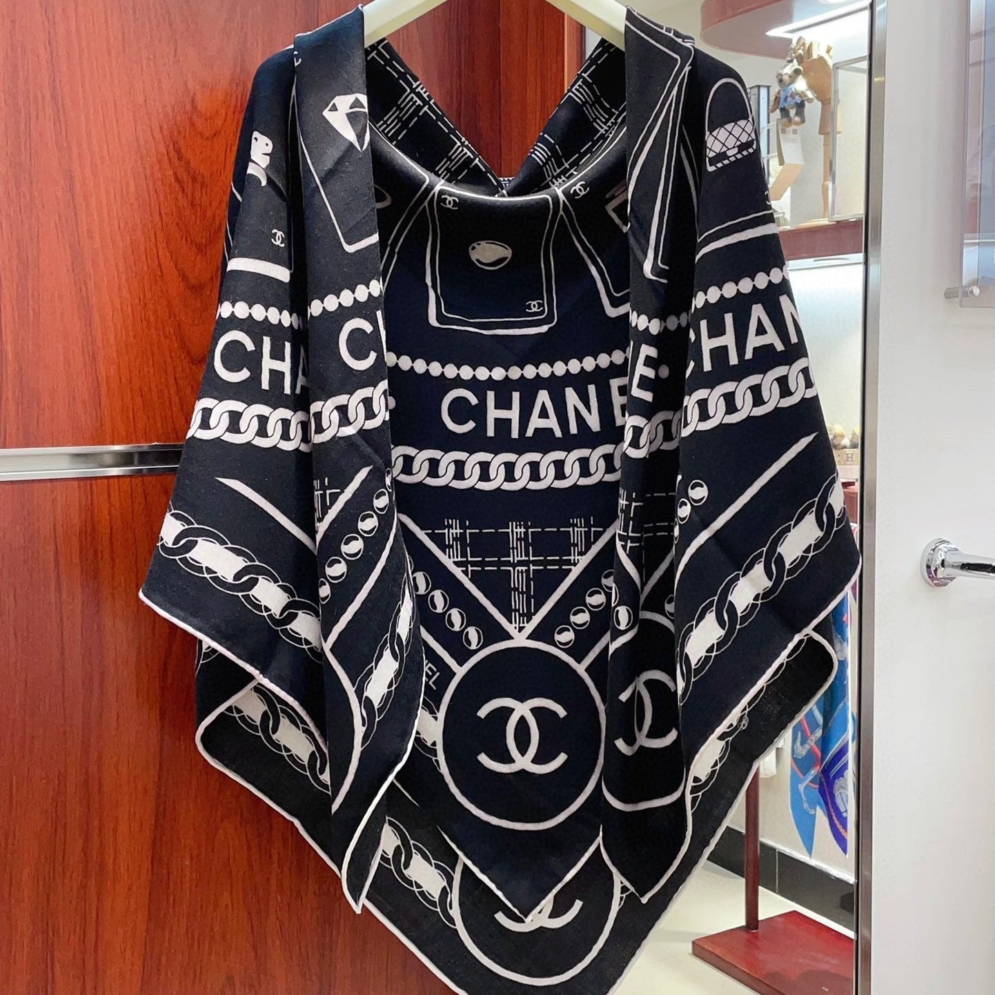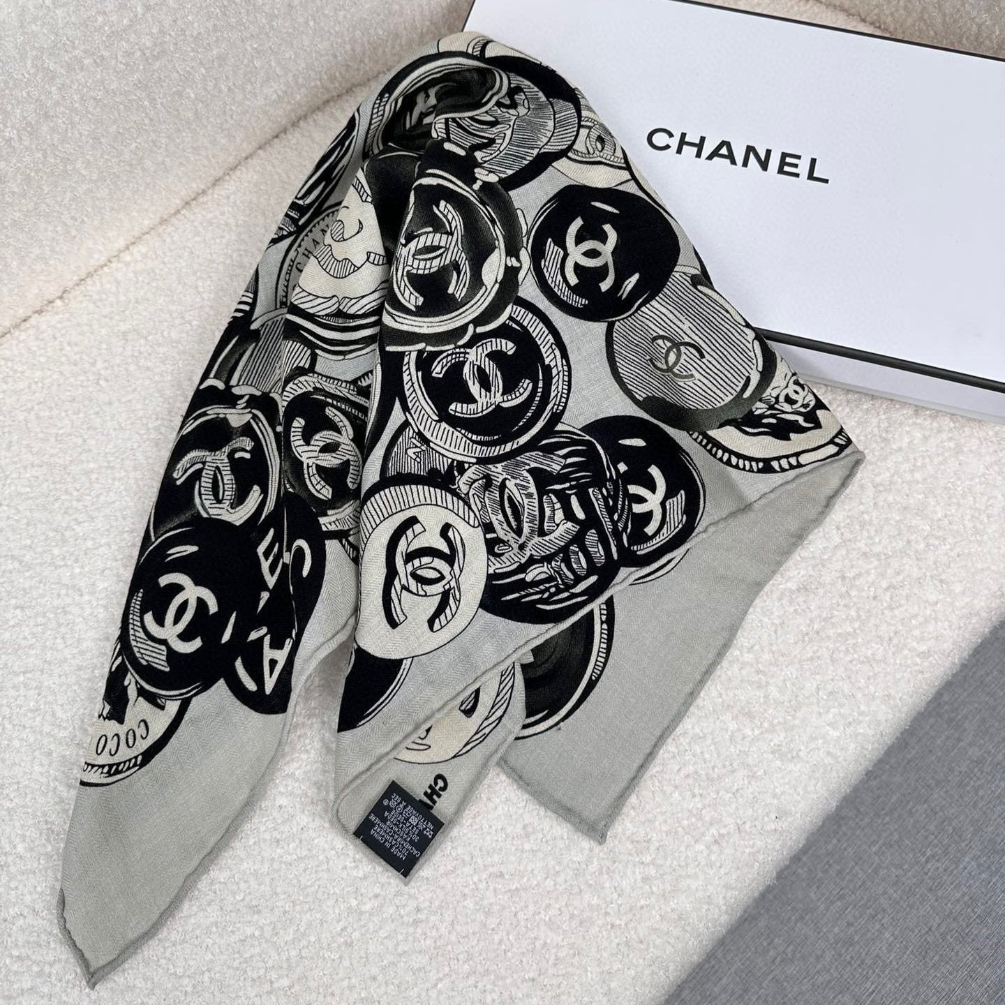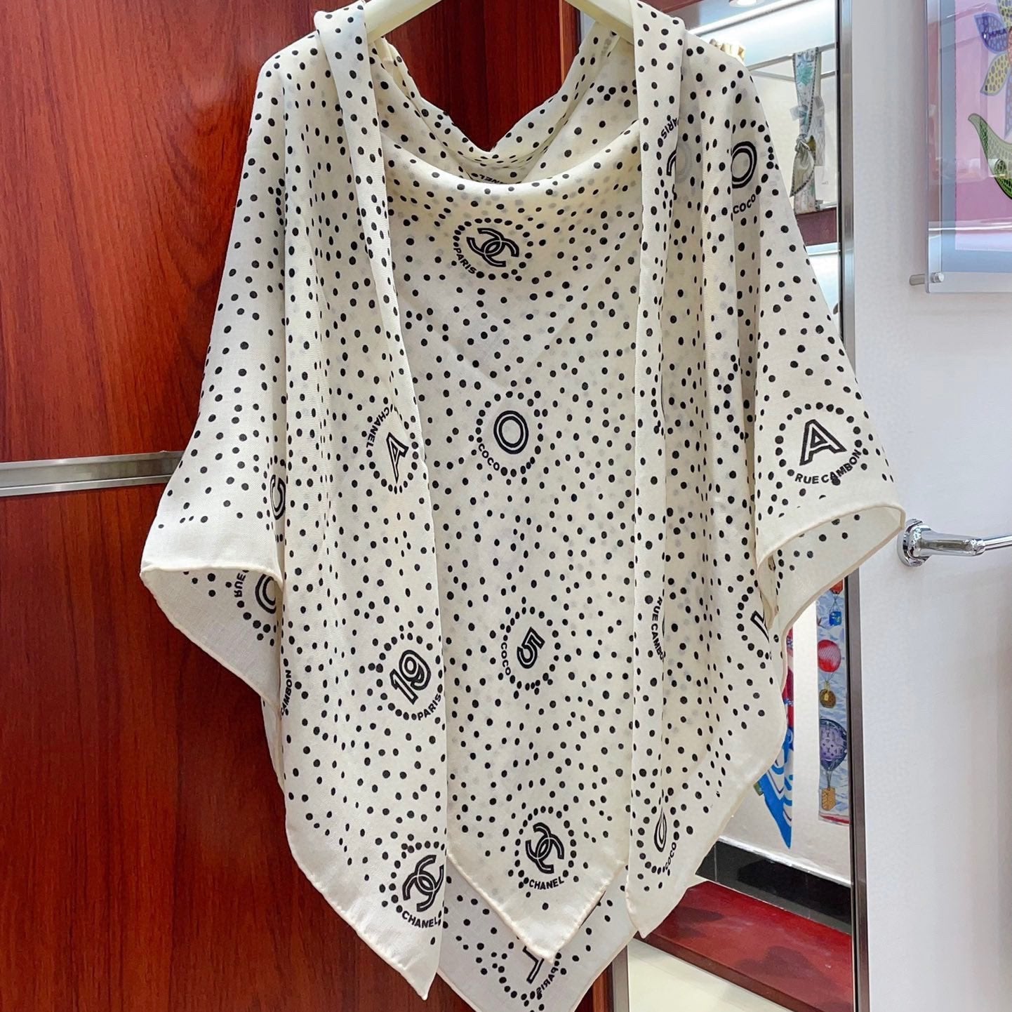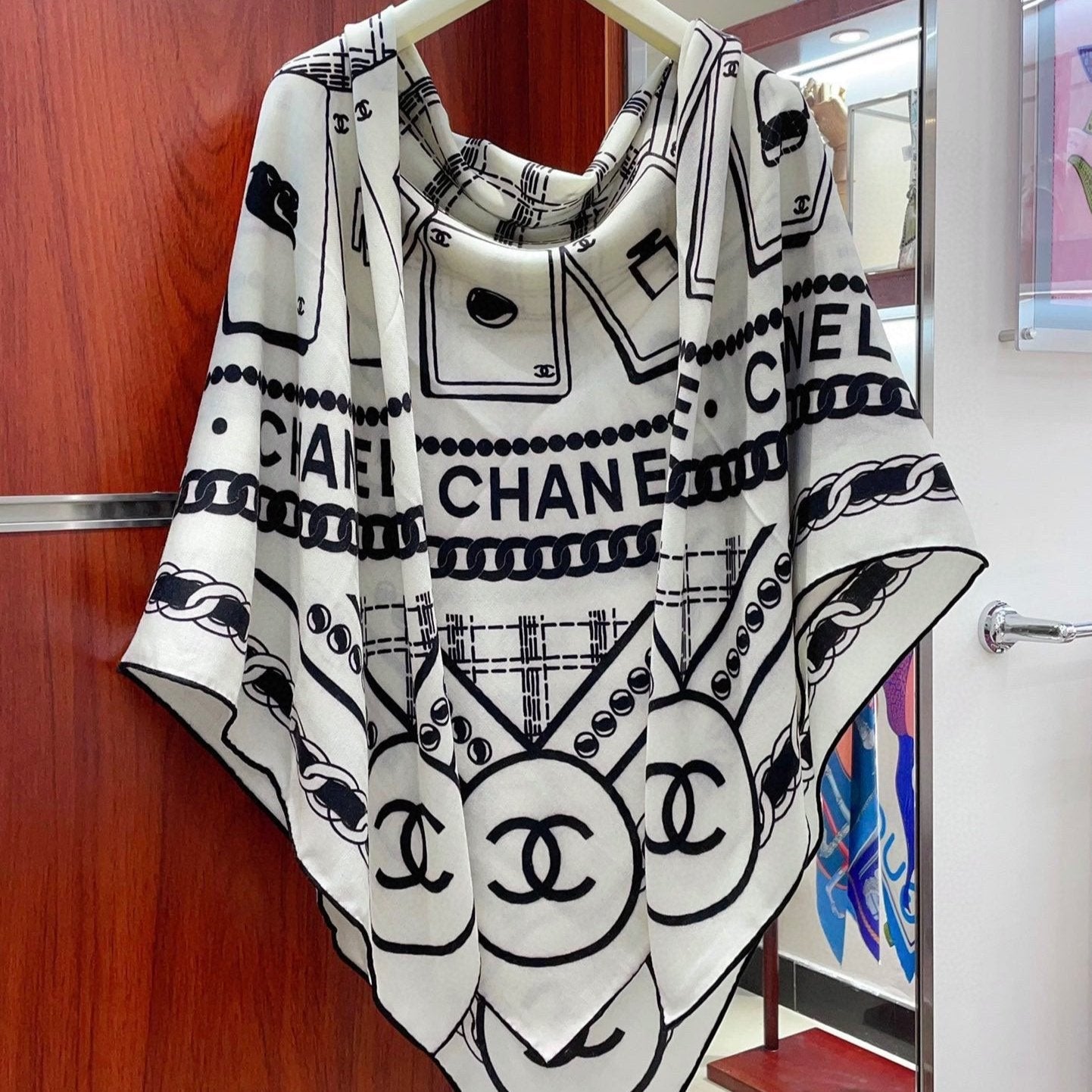 CC Square Scarf 140 CM In Black White Cashmere Silk 408418