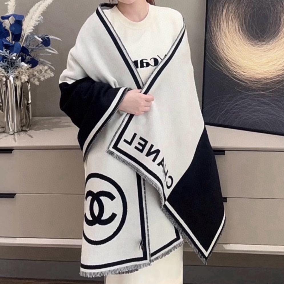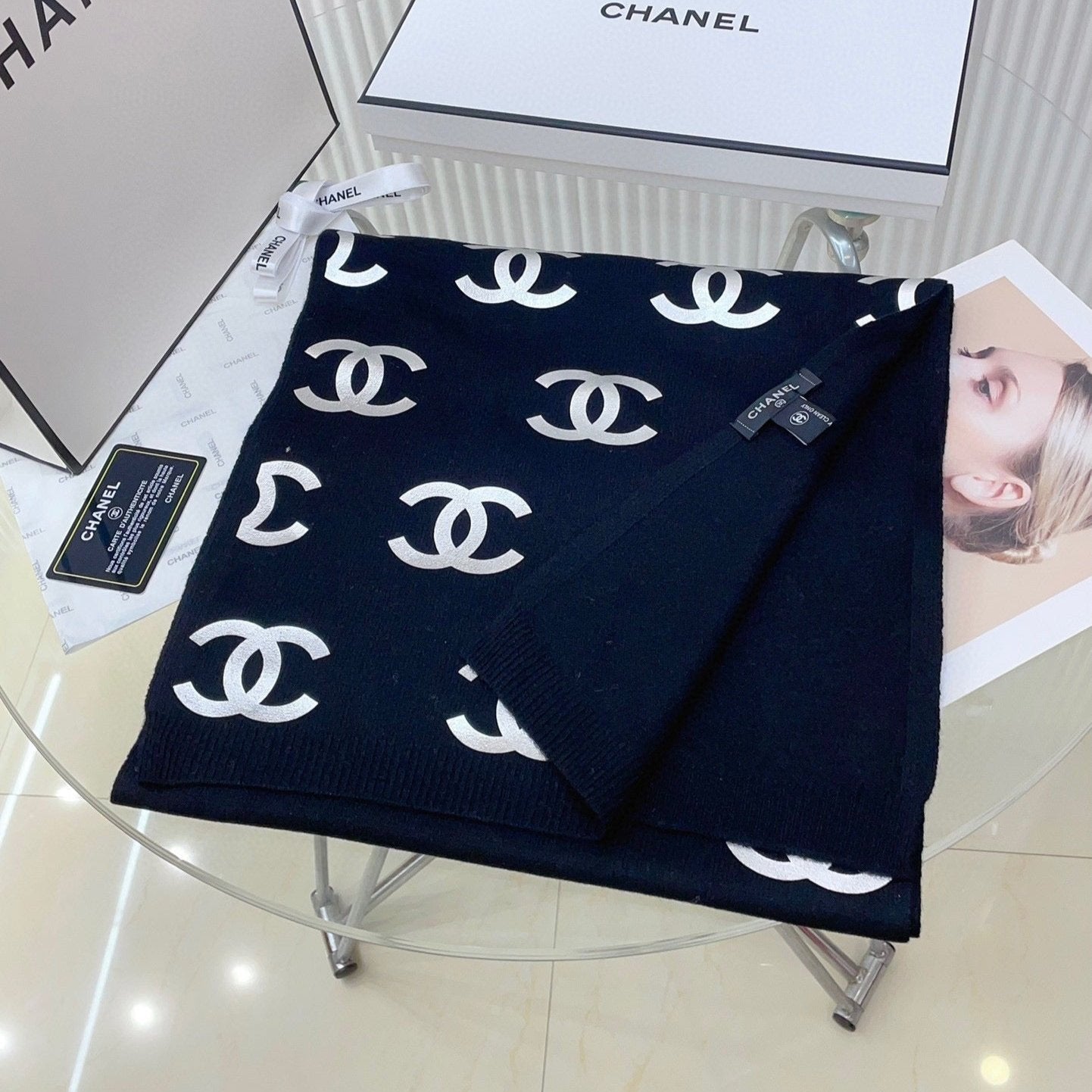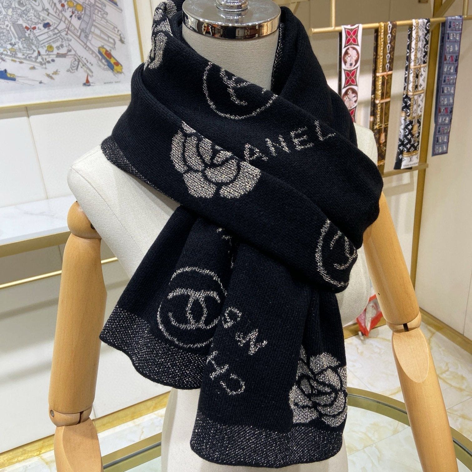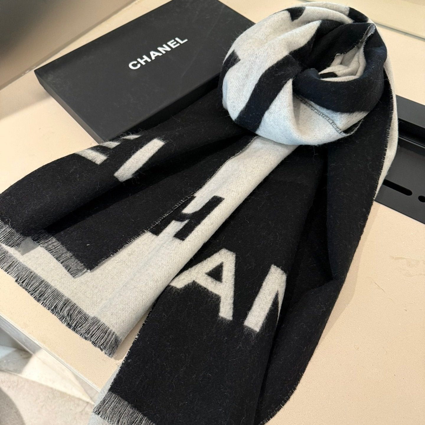 CC Scarf 180 CM In Black Mix White Cashmere And Wool Mix Silk 407255