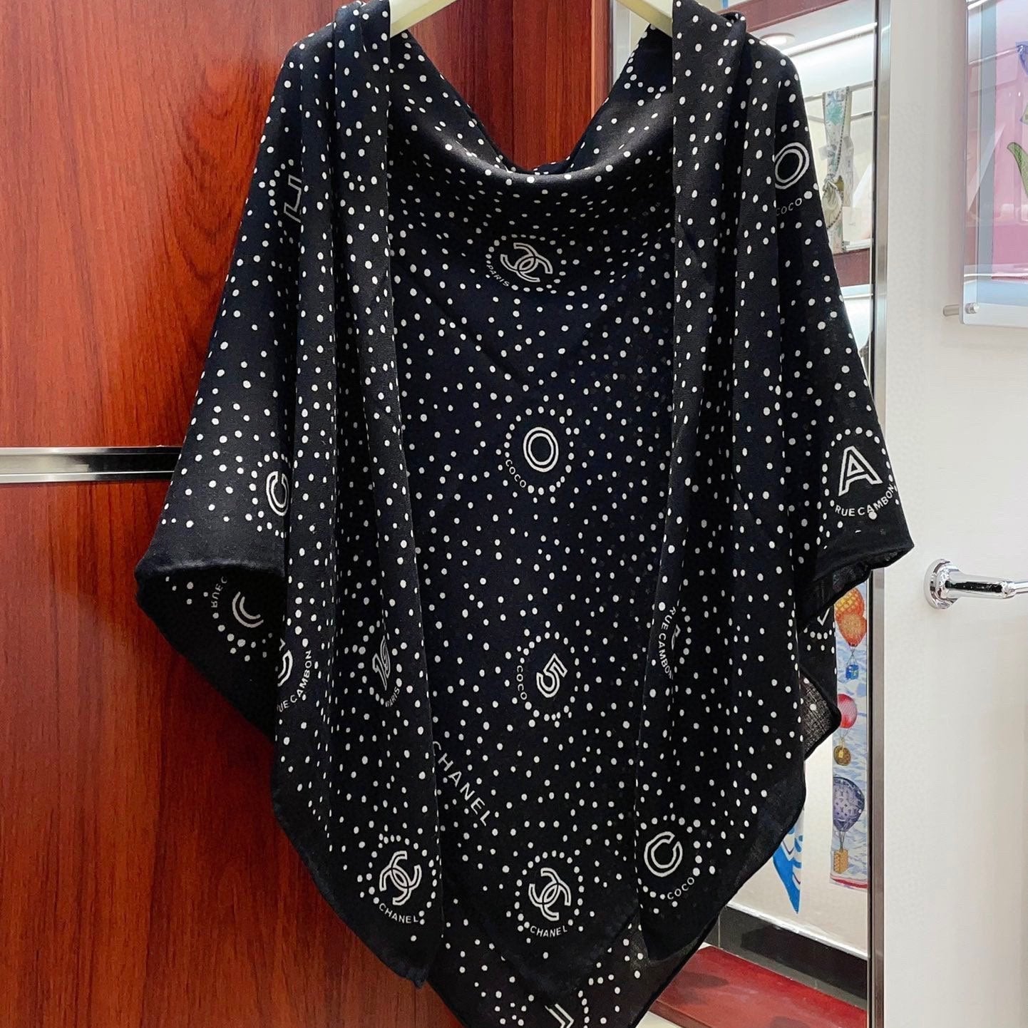 CC Square Scarf 140 CM In Black Mix White Cashmere And Silk 407280