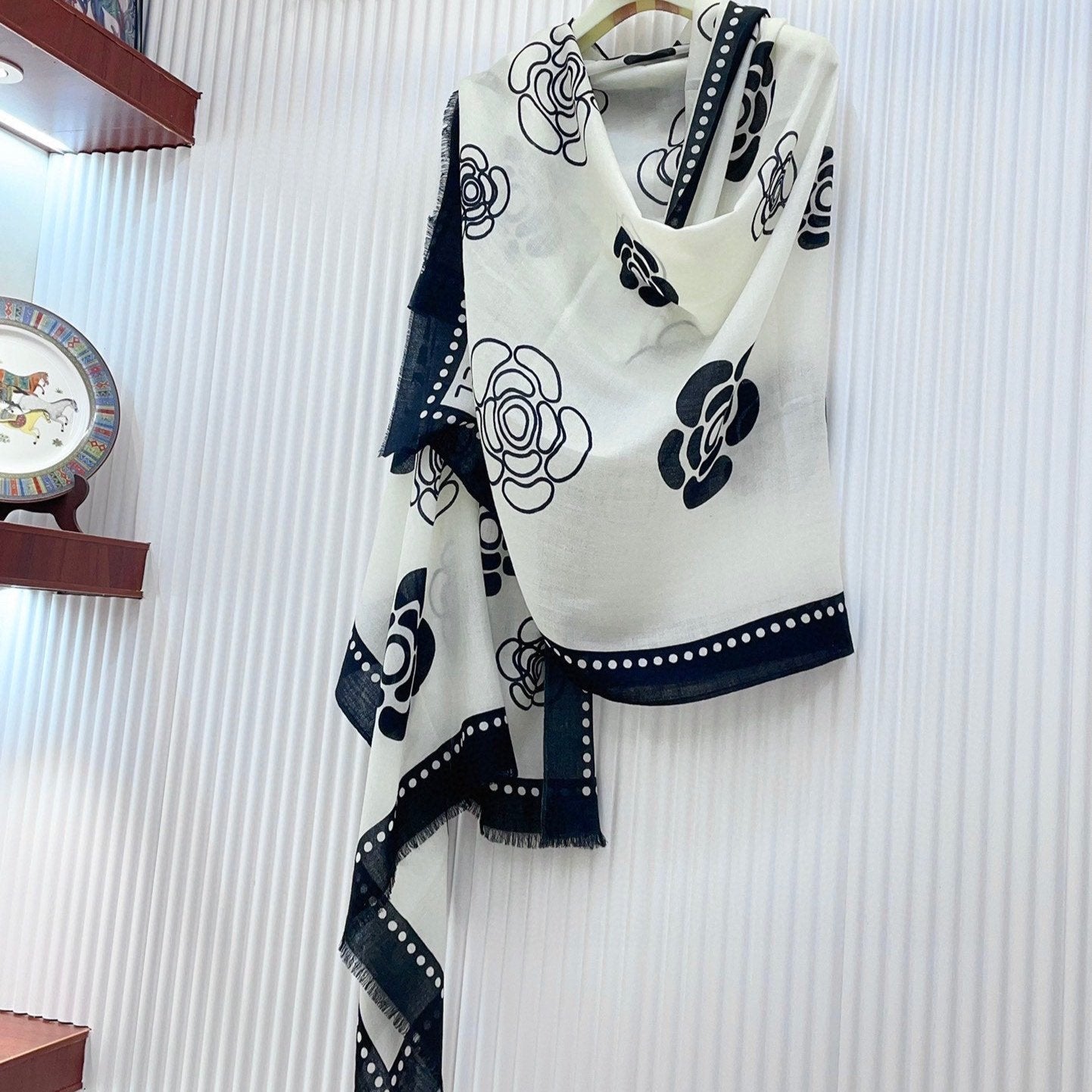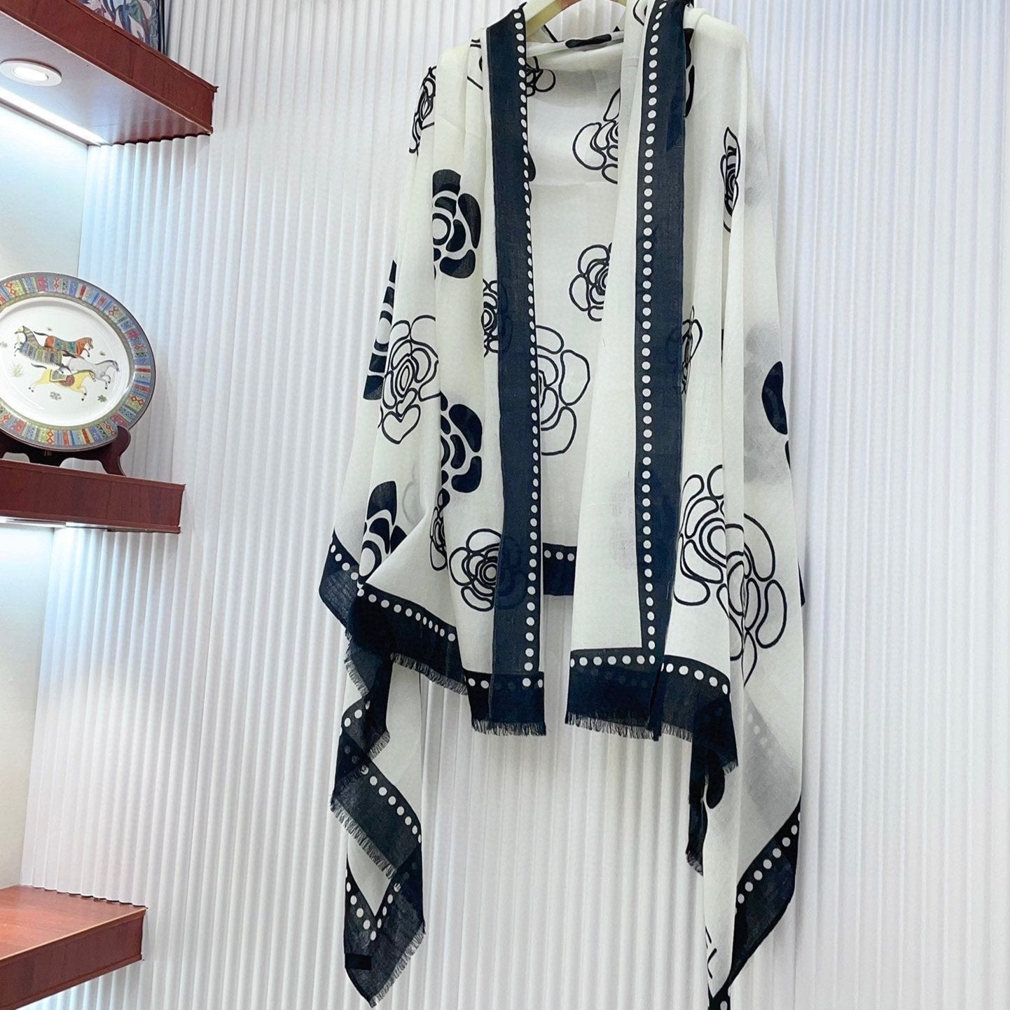 CC Scarf 180 CM In White Black Cashmere Silk 401133