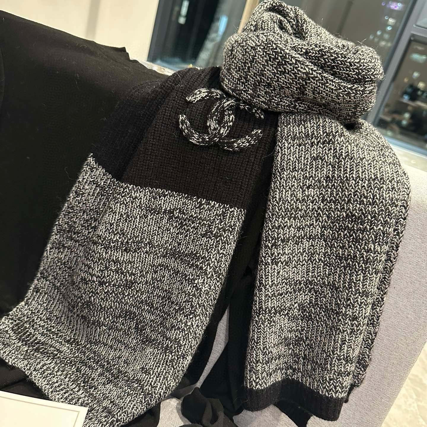 CC Scarf 180 CM In Black Mix Grey Cashmere 407235