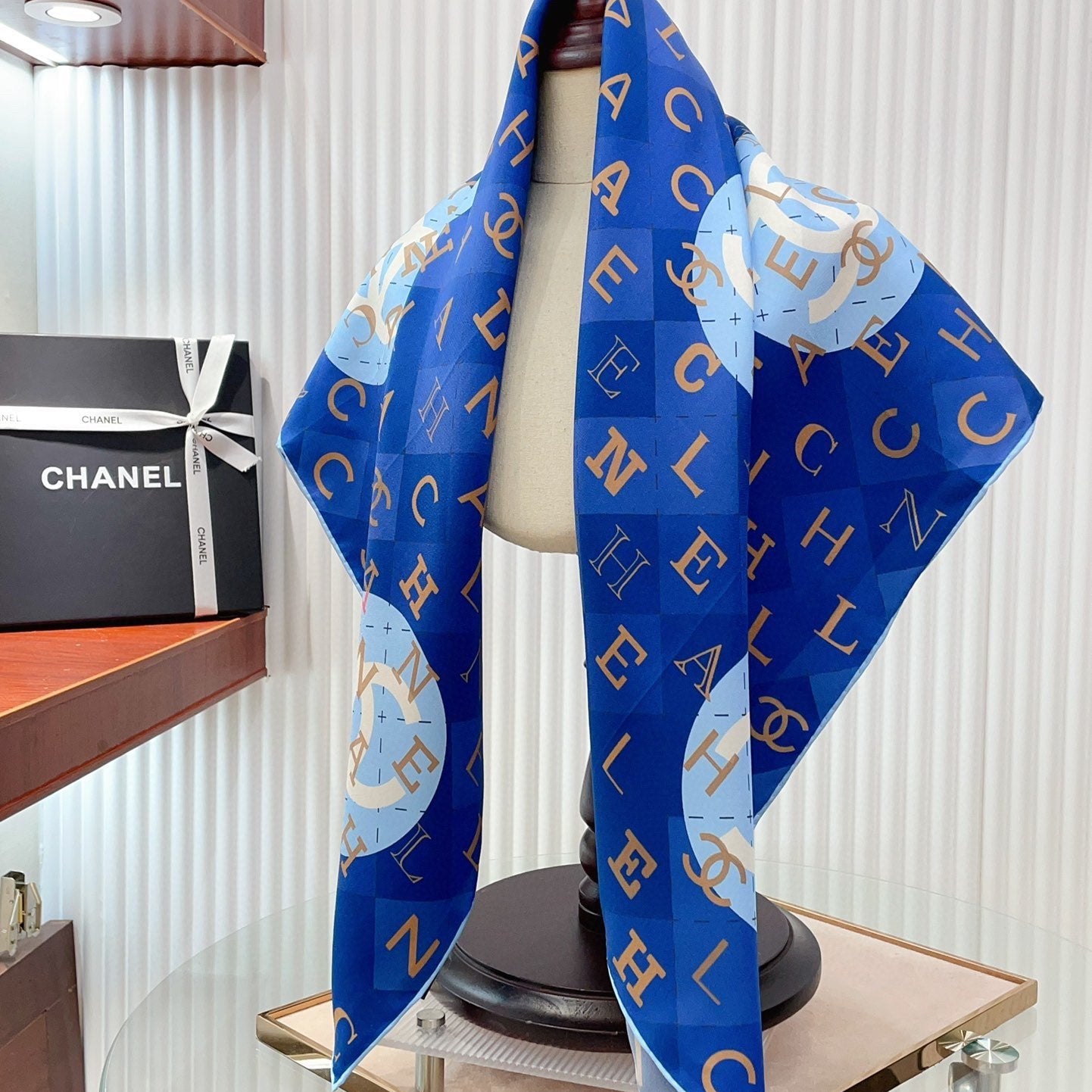 CC Square Scarf 90 CM In Blue Silk Twill 306566