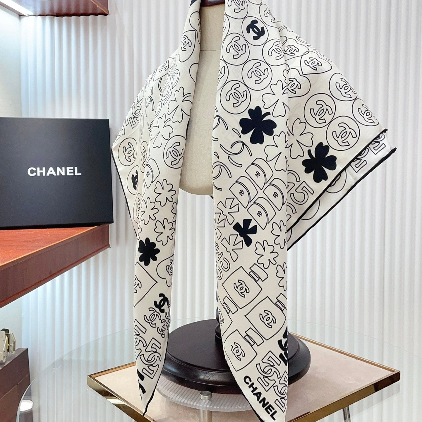 CC Square Scarf 90 CM In White Beige Mix Black Silk Twill 350414