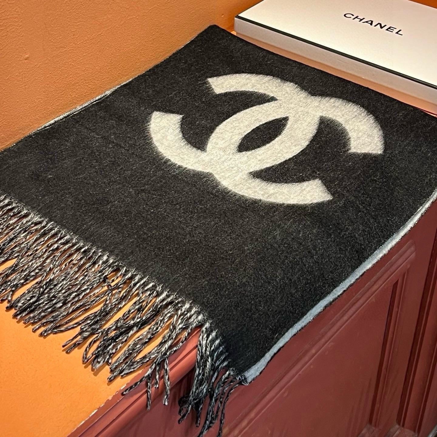 CC Scarf 185 CM In White Black Printed Pattern Cashmere Silk 371904