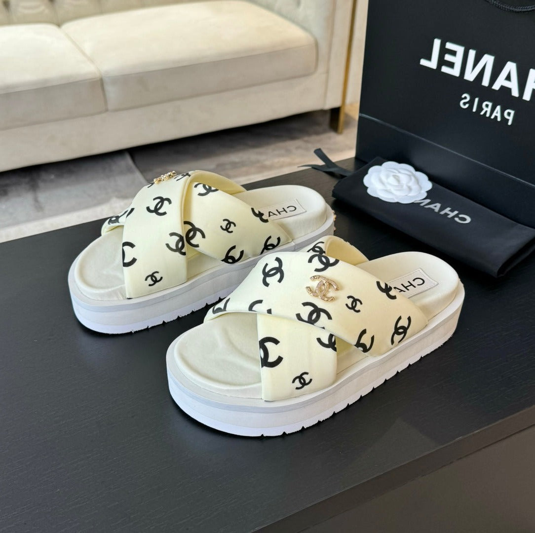 Cross Straps Mule Sandals Lambskin Beige Cream