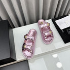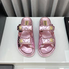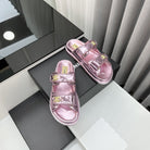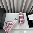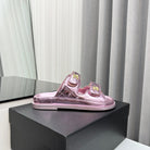 dad sandals pink metalic lambskin mules