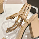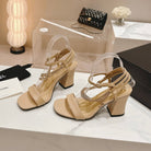 Double C Leather High Heel Sandals Beige Cream