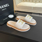 Double C Wood Grain Platform Slippers White Wool