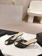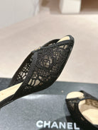 mule sandal 75 black lace fabric beige calfskin