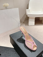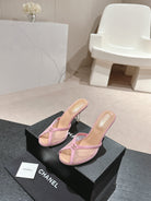 mule sandal 75 pink fabric dark beige calfskin
