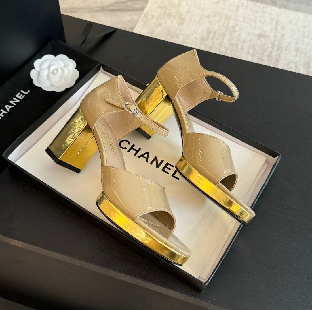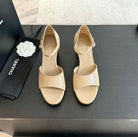 Platform Peep-Toe Sandals Beige Cream Lambskin