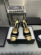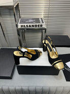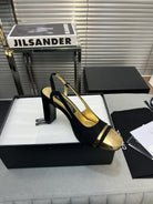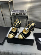 slingback black suede gold metalic lambskin square toe 9.5