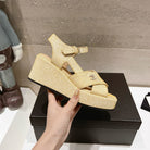 Wedge Open-Toe High Heel Sandals Beige Cream Sheepskin