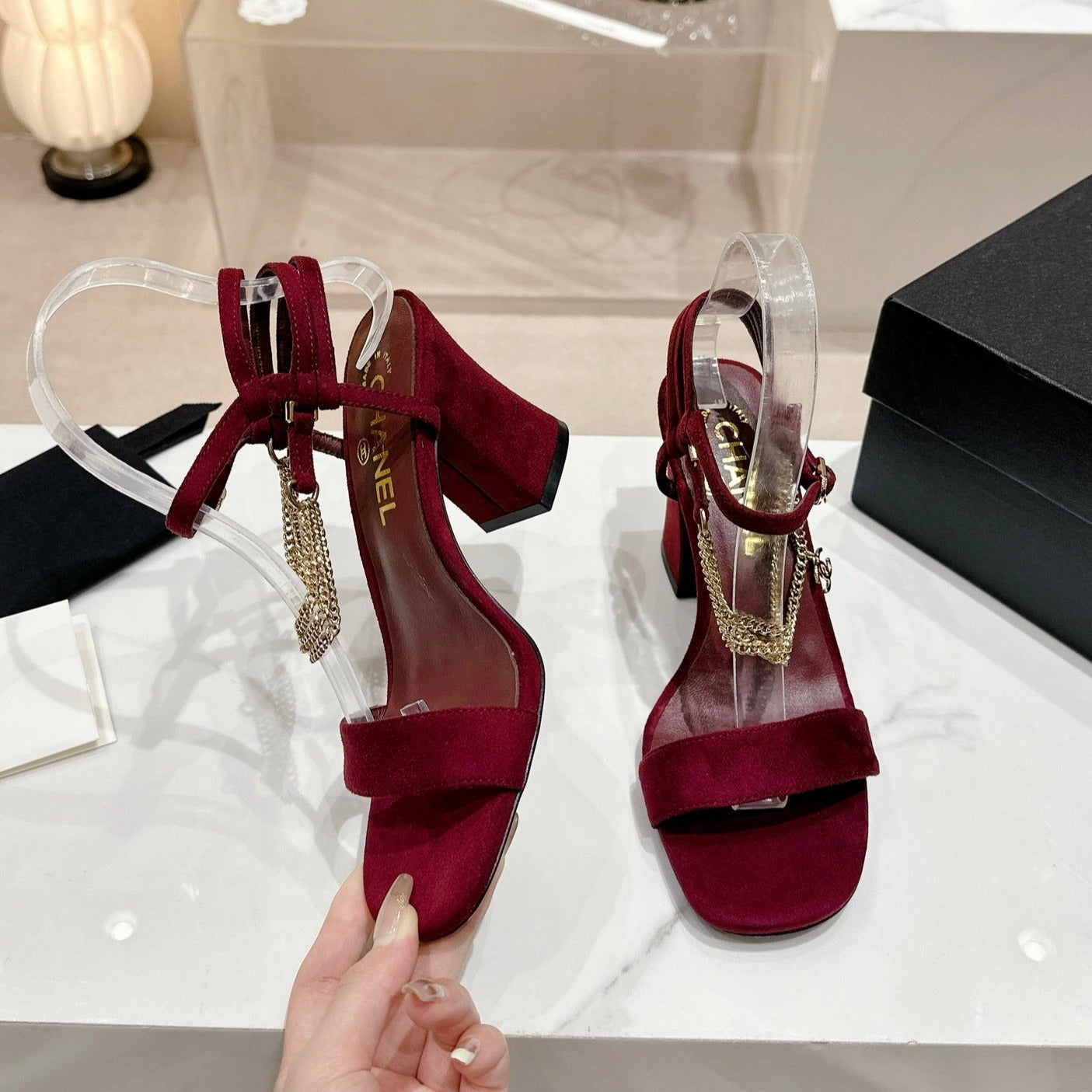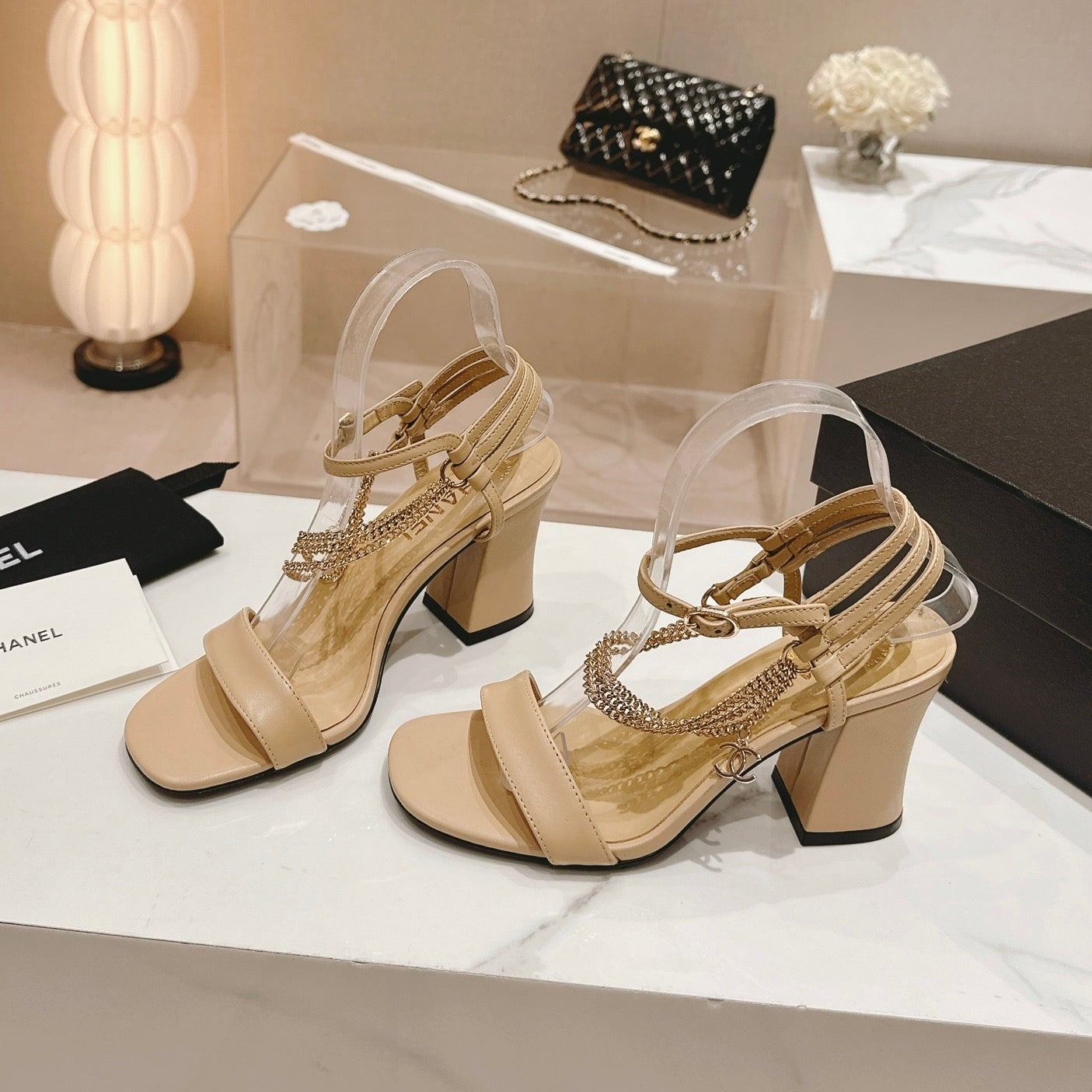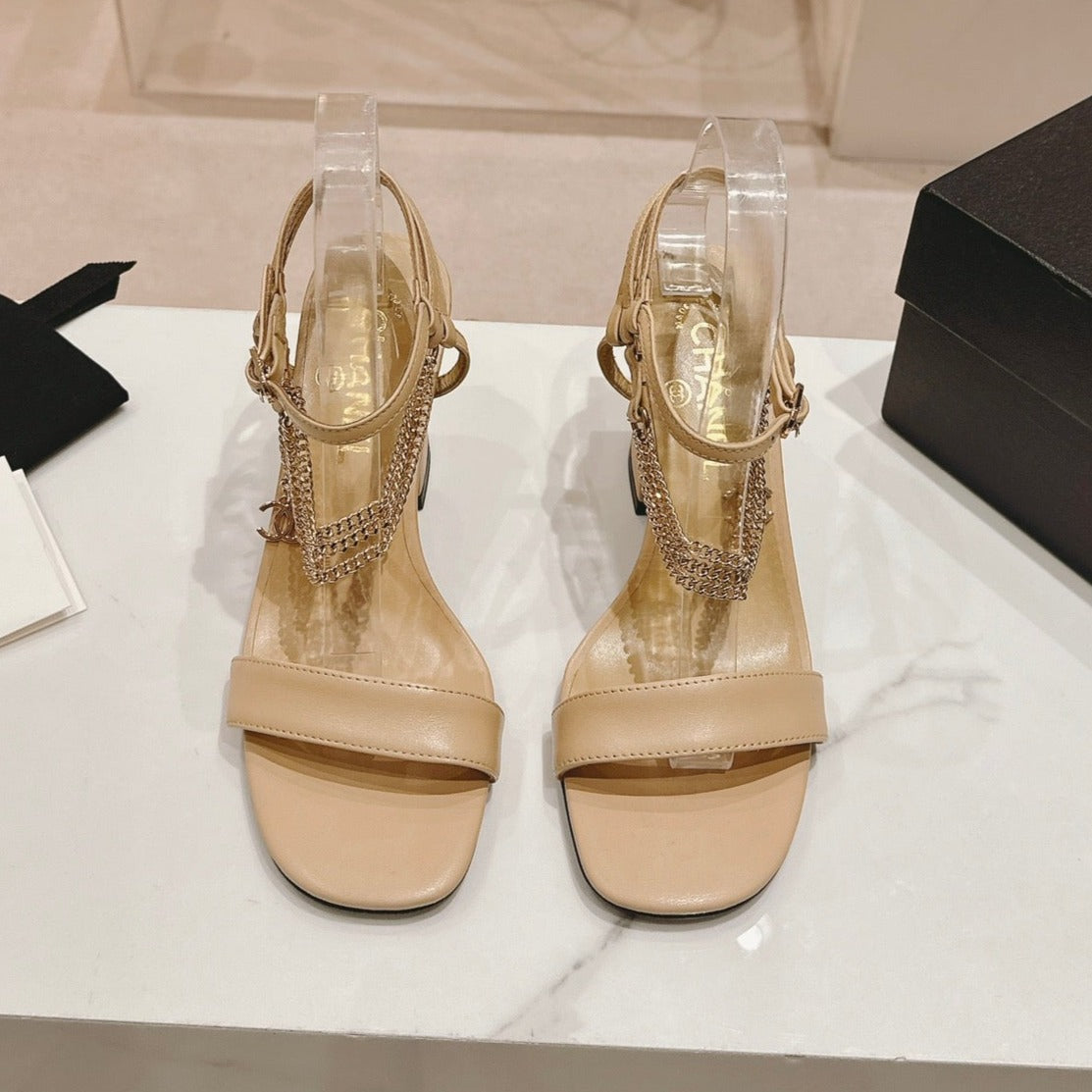 CC Little Camellia World Thin High Heels Tan Brown Lambskin