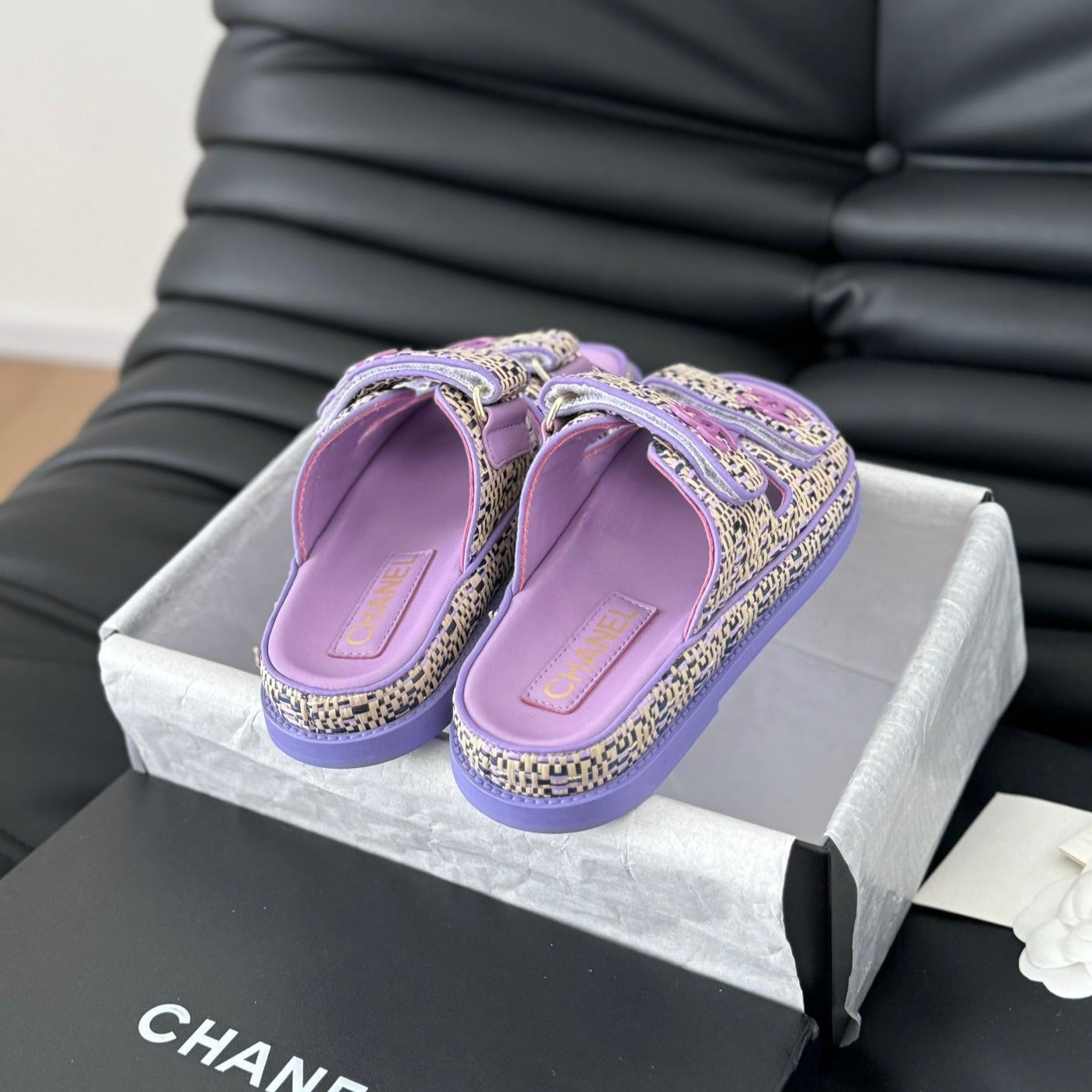 Double C Platform Biscuit Shoes Fabric Navy Blue