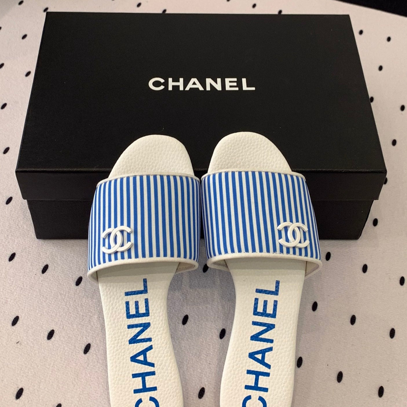 mule sandal striped blue white