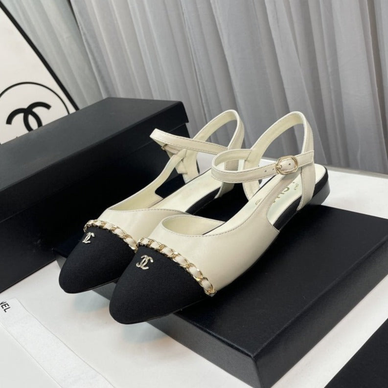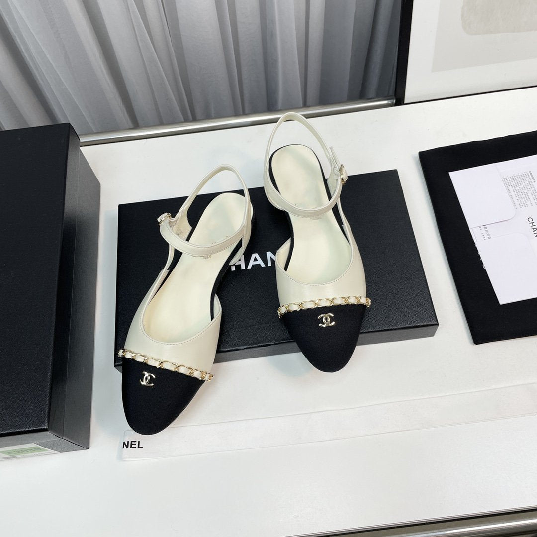 slingback cream lambskin black leather chain grosgrain