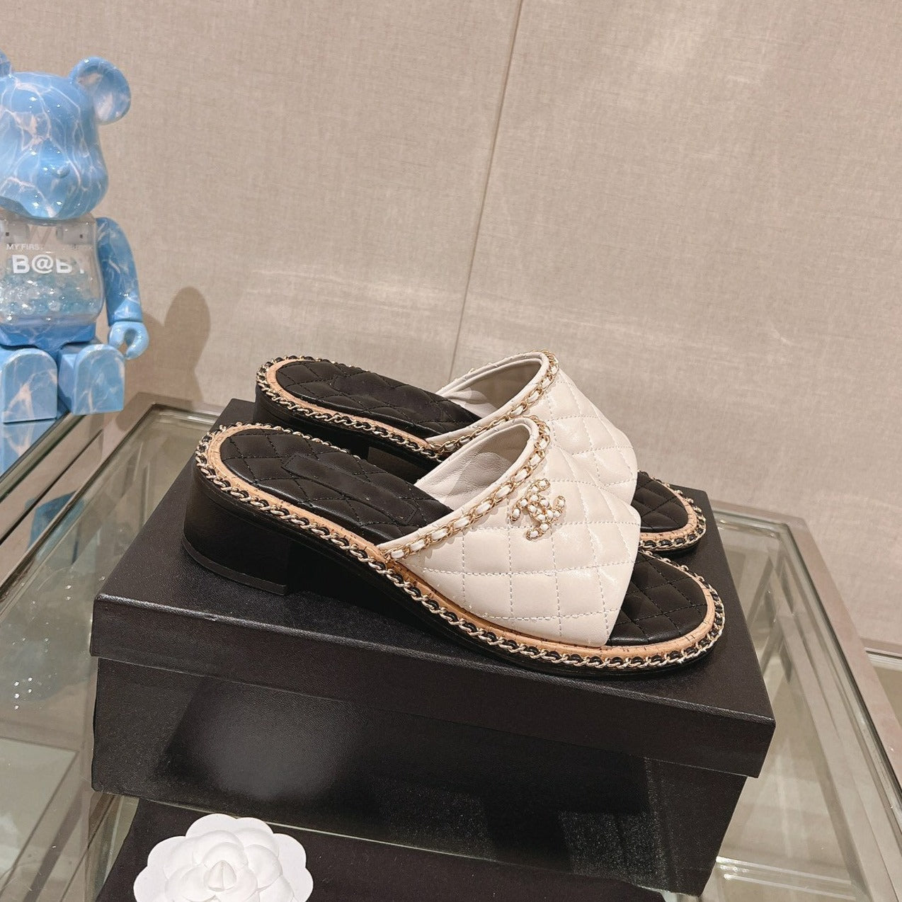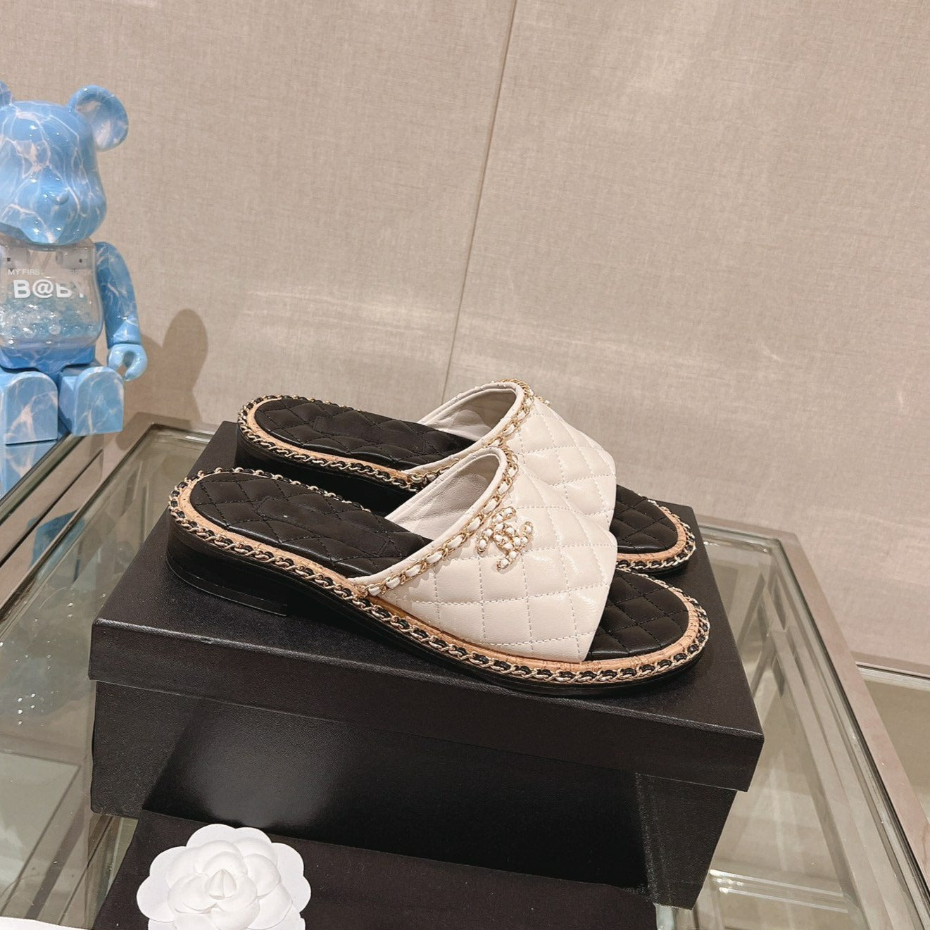 cc sandal white beige lambskin mop