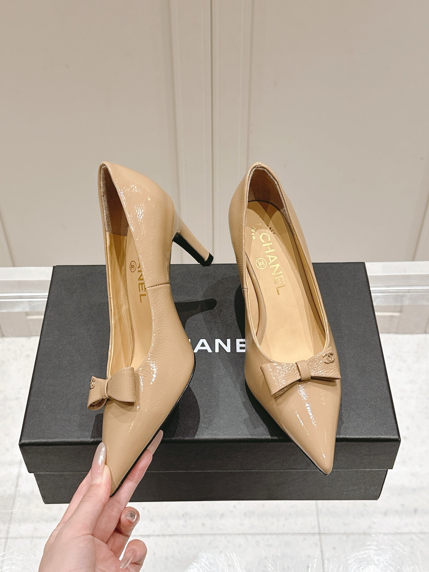 Chanel 25A Heel Pump Nude Patent Calfskin 393070