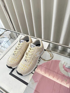 cc sneaker white yellow tweed dark cream calfskin
