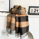 CHECK SCARF 180 CM IN BLACK MIX SAND YELLOW CASHMERE AND WOOL 415298