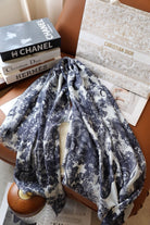 SCARF 180 CM IN STONE BLUE SILK AND CASHMERE 418263