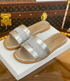 cd slide silver metalic calfskin embroidered cotton