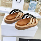 TIPPI SLIDE IN CANVAS & CALFSKIN NATURAL BROWN CREAM/ BLACK