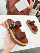 TWO-STRAP SANDALS IN CHESTNUT BROWN CALFSKIN