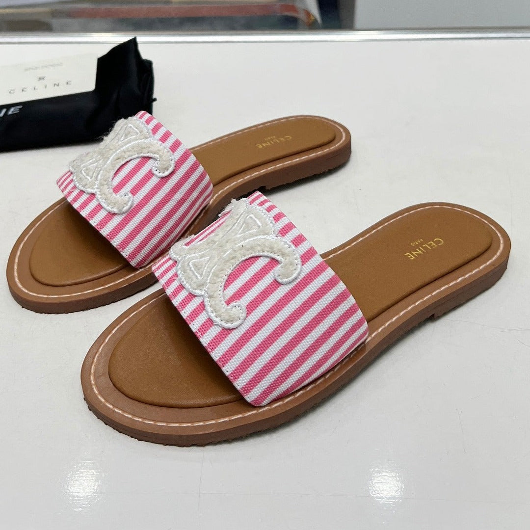 CELINE 25 Slippers Blue Stripe Orange Denim 285981