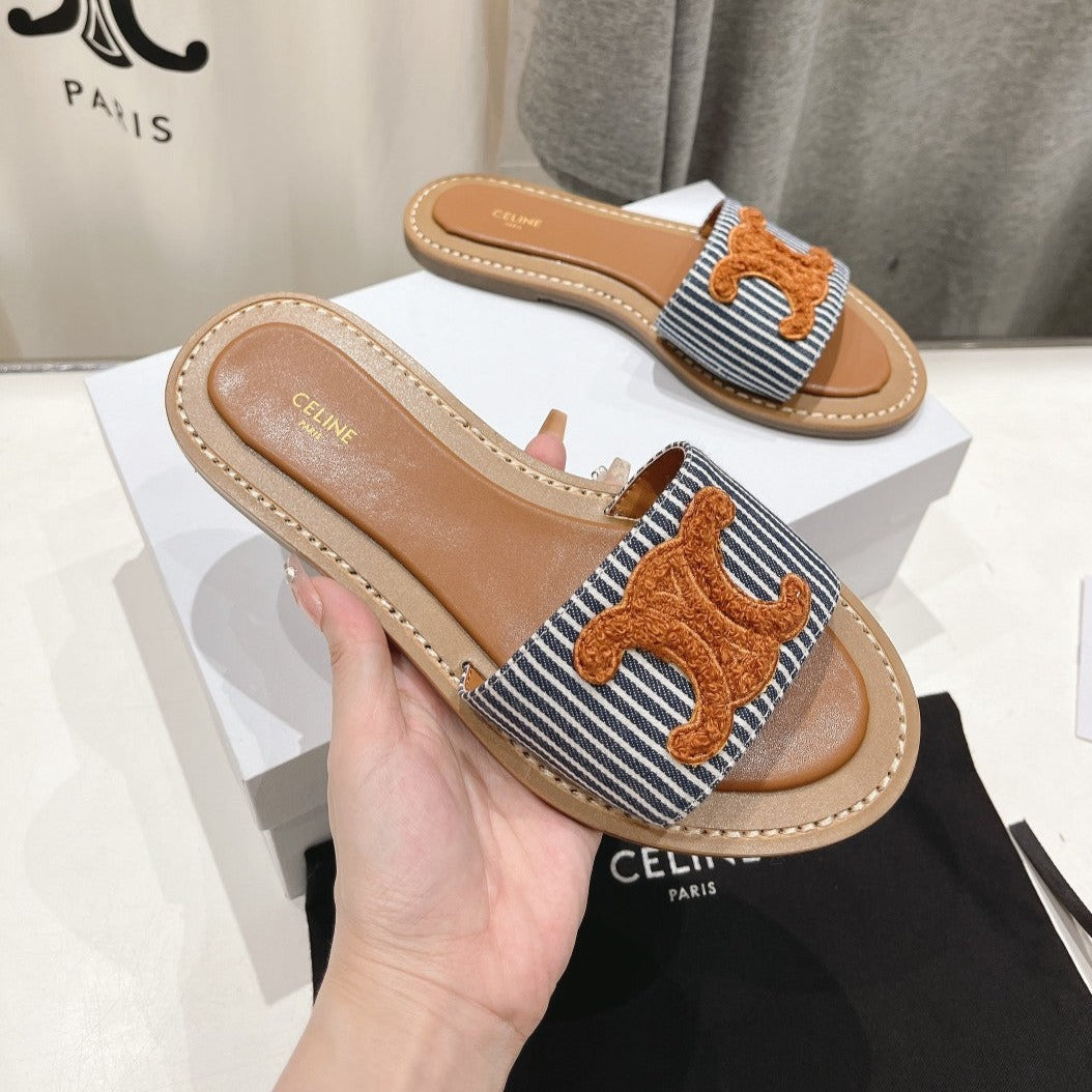 TRIOMPHE SLIDE IN BRONZE BROWN CALFSKIN