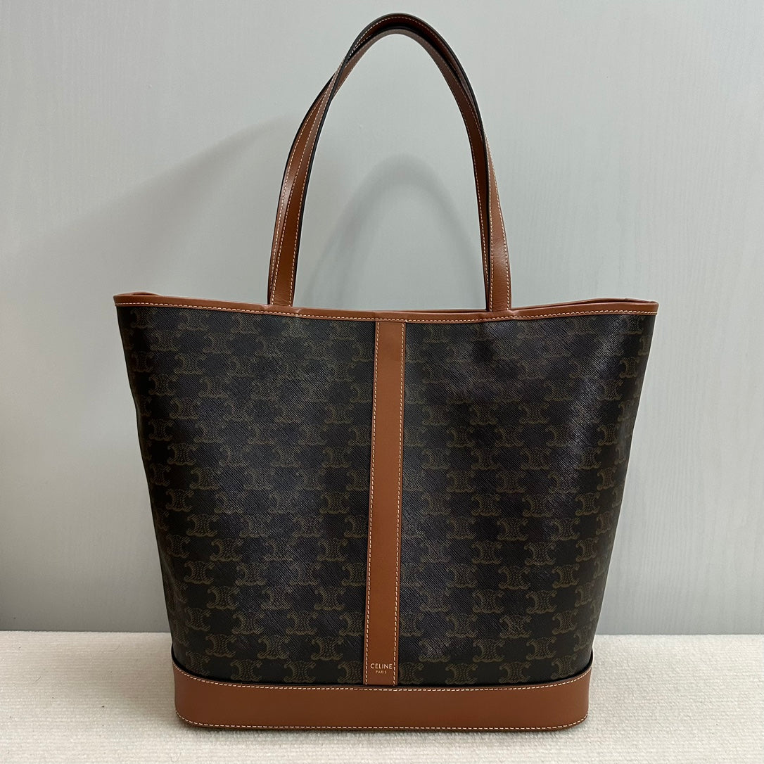 MEDIUM CABAS TRIOMPHE CANVAS 31.5 TAN CALFSKIN