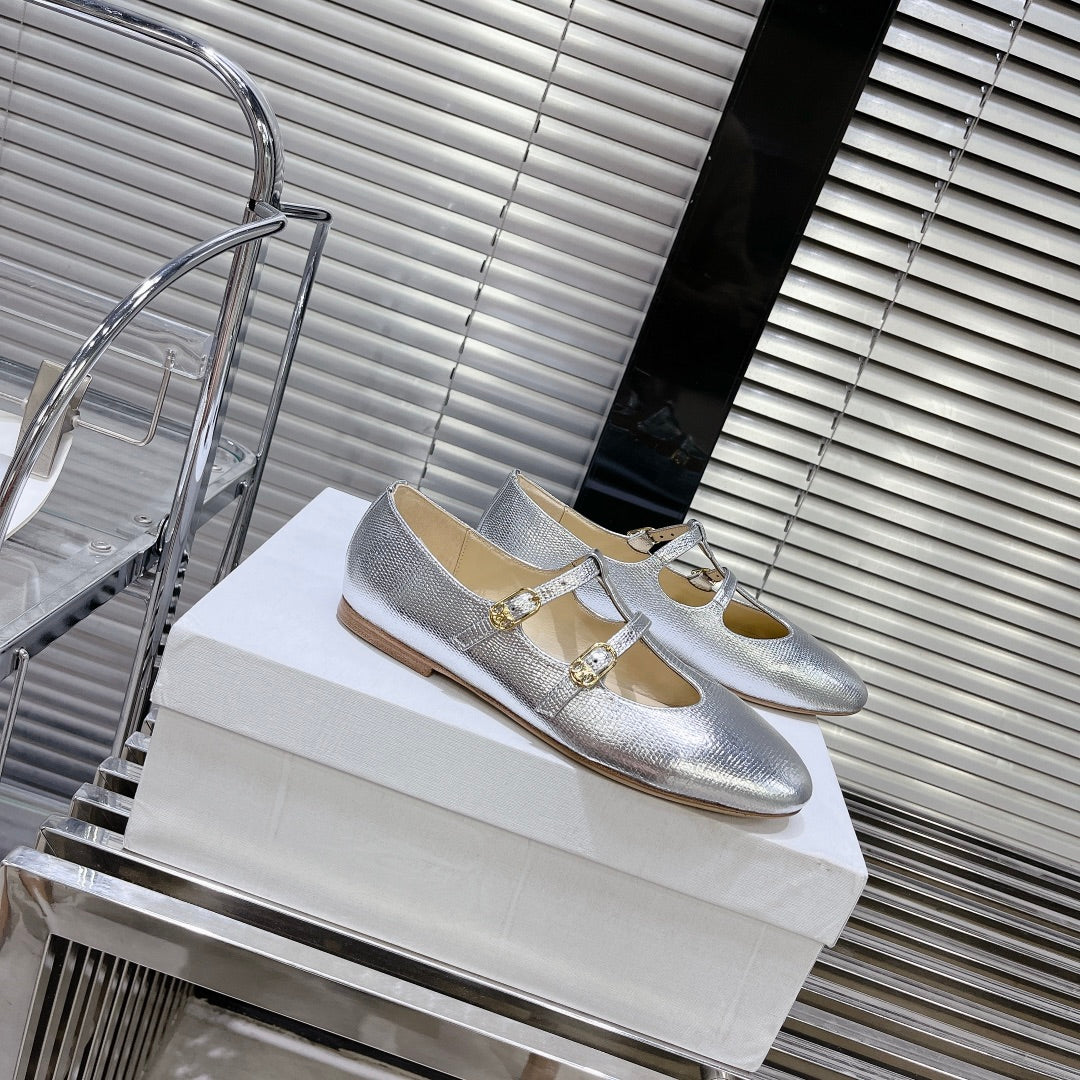 BALLET FLAT IN SILVER CALFSKIN