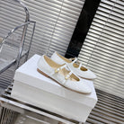 FLAT SANDALS WITH DOUBLE STRAP-DESIGN LEATHER WHITE