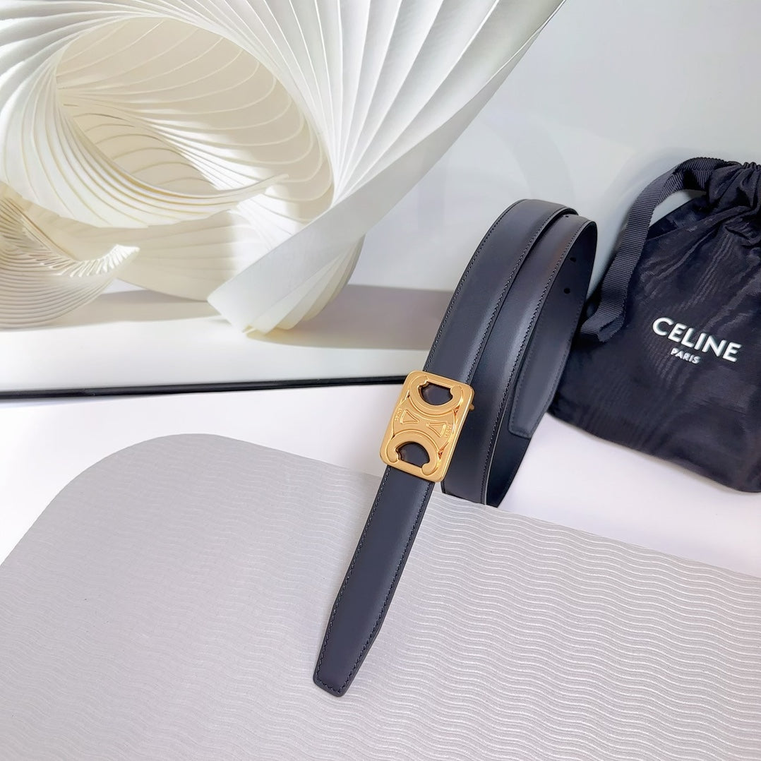 CL MEDIUM 25MM TRIOMPHE BELT IN BLACK CALFSKIN GOLD HARDWARE