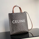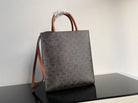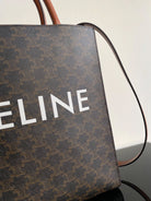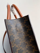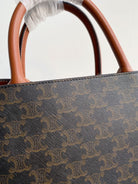 small vertical cabas 28cm black triomphe canvas tan calfskin