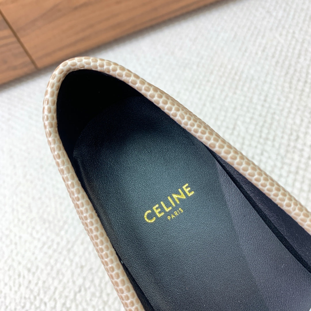 CELINE Buckle Triomphe Loafers White Leather 285957