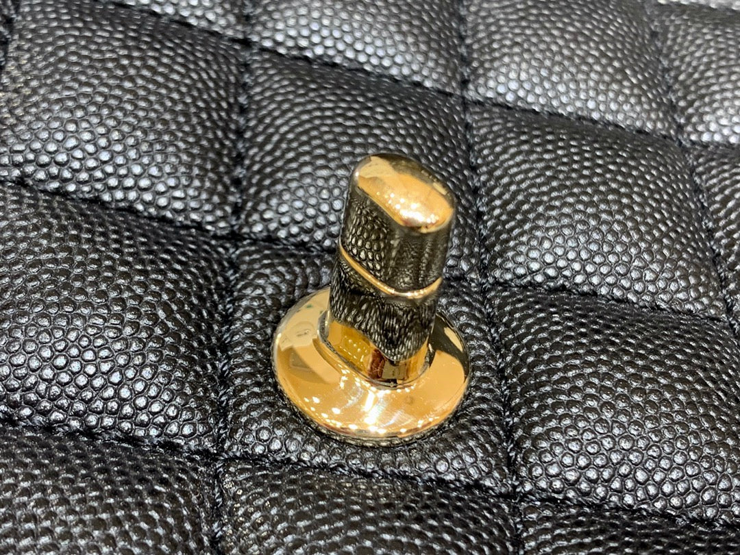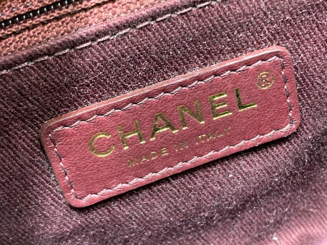 CC 24K Coco Hanle Mini 19cm Black Red Grained Calfskin Gold Hardware