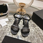 CC 25C 10CM Mid Heed Sandals Black Italian Leather 213318