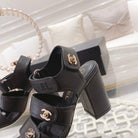 CC 25C Three Strap Sandal High Heel Black Sheepskin 213350